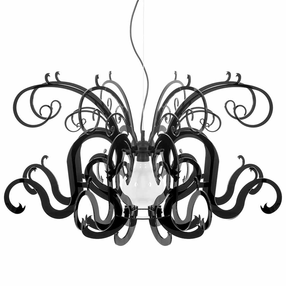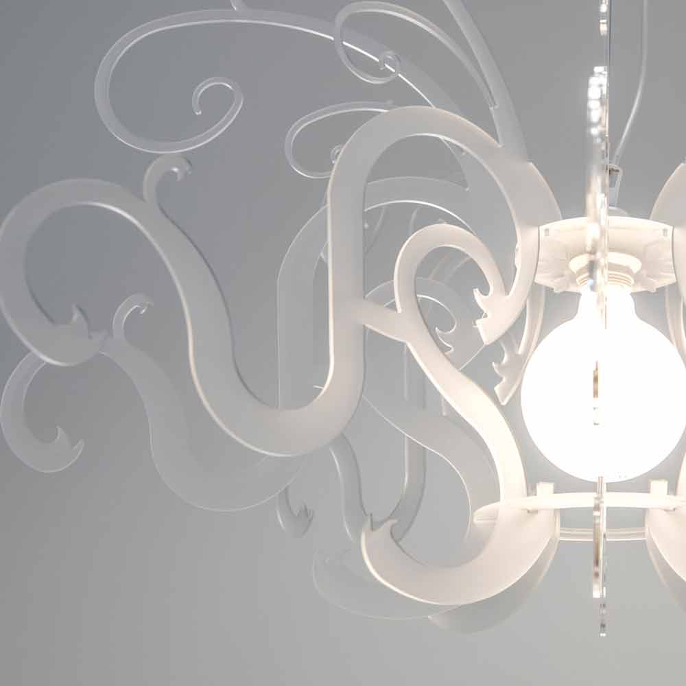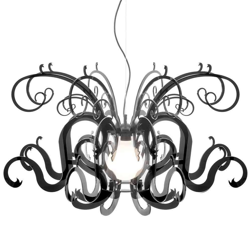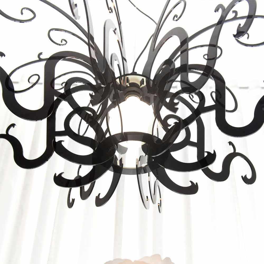 Malito é um majestoso lustre feito de polímero virgem PMMA em branco ou preto .