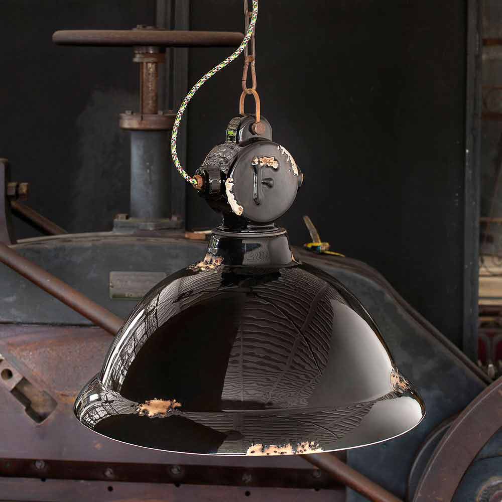 Angela é uma suspensão fantástica, com formato de sino e estilo vintage - industrial, feito à mão por artesãos habilidosos na Itália.