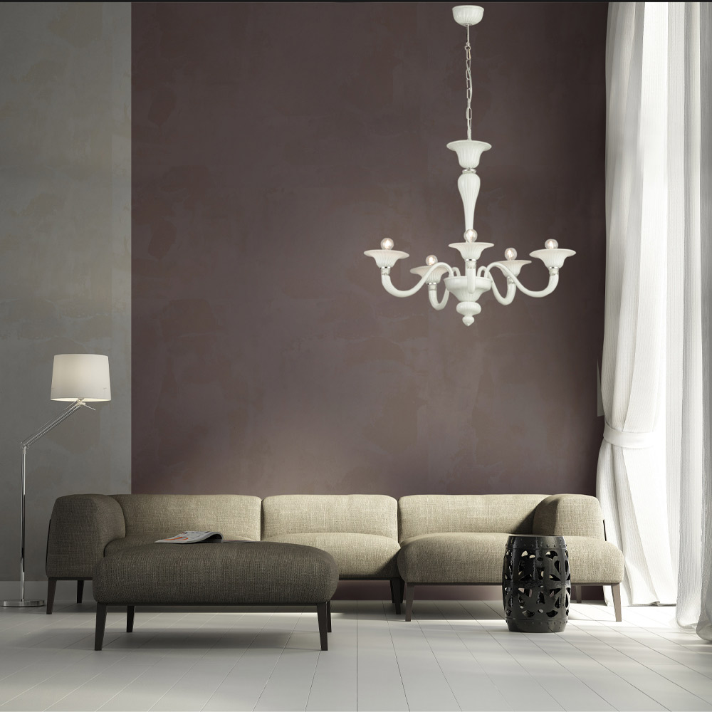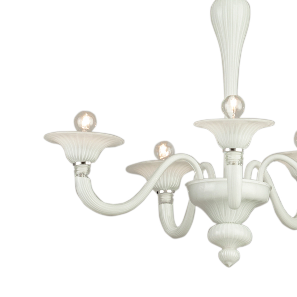 Lustre clássico de vidro de Veneza branco soprado à mão.