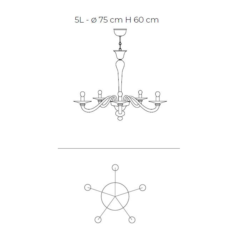 - 5 luzes - diâmetro 75 x H 60 cm (5x E14 máx. 40 W);
