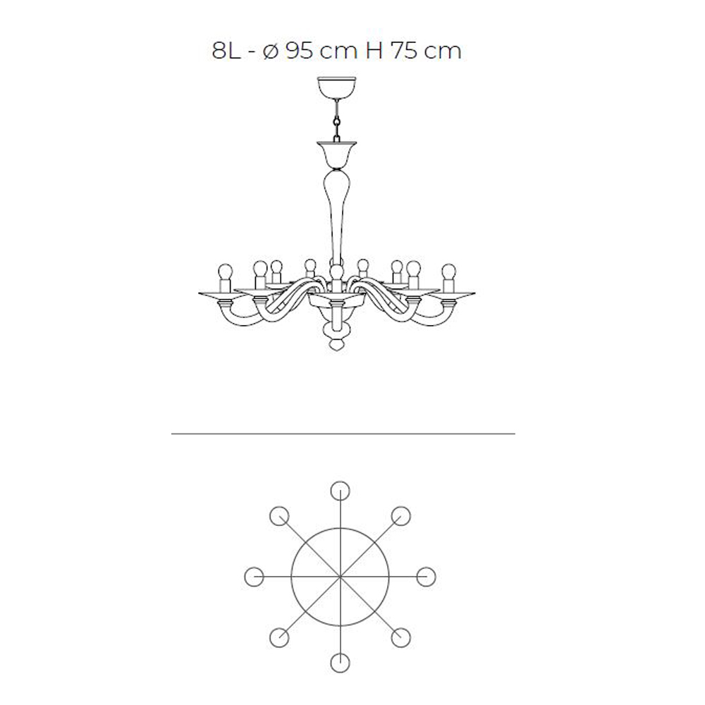 - 8 luzes - diâmetro 95 x H 75 cm (8x E14 máx. 40W).