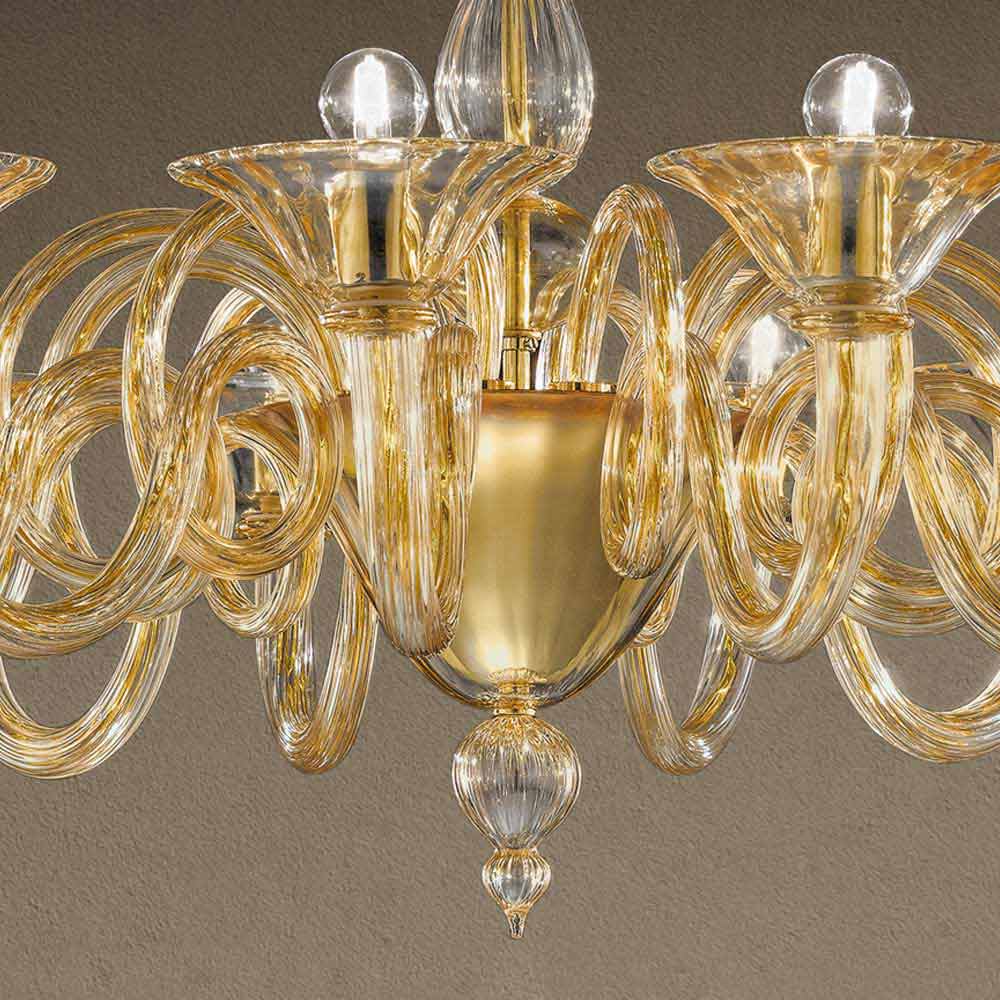 Lustre de 12 luzes em vidro veneziano com acabamento âmbar, feito à mão na Itália.