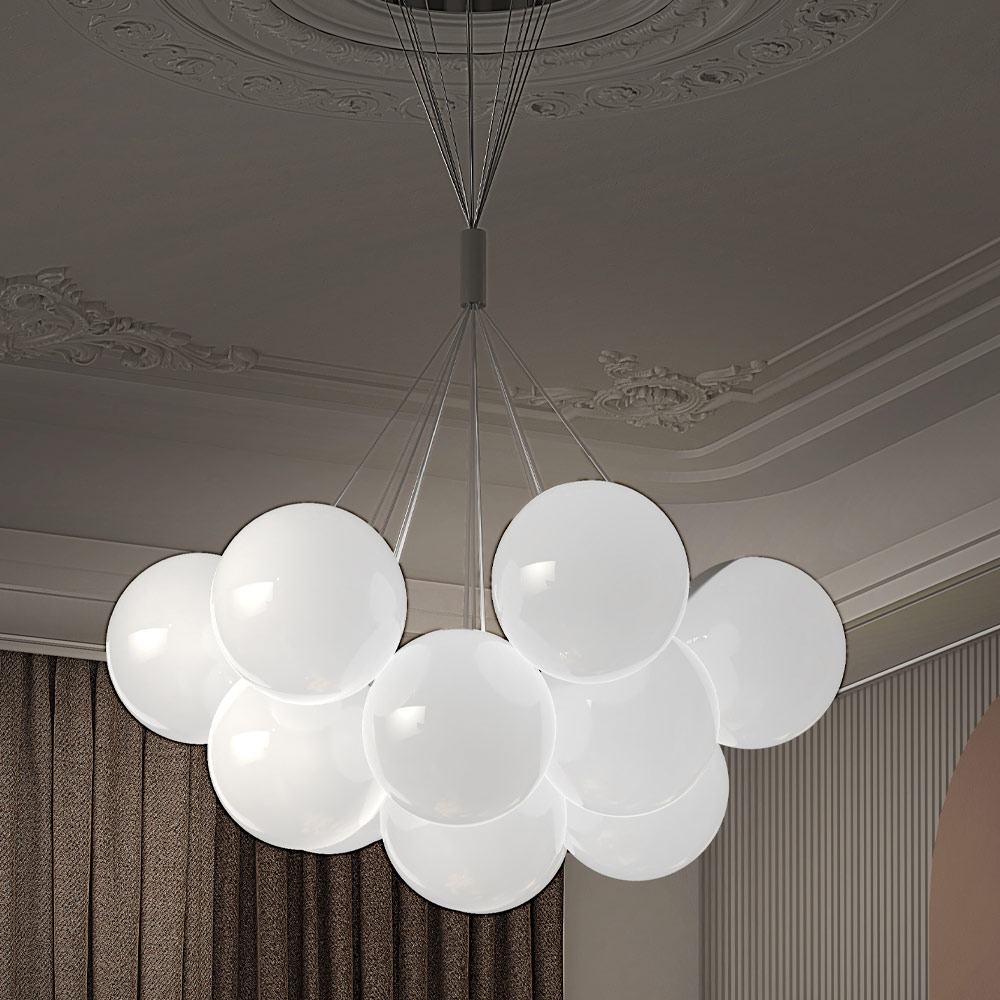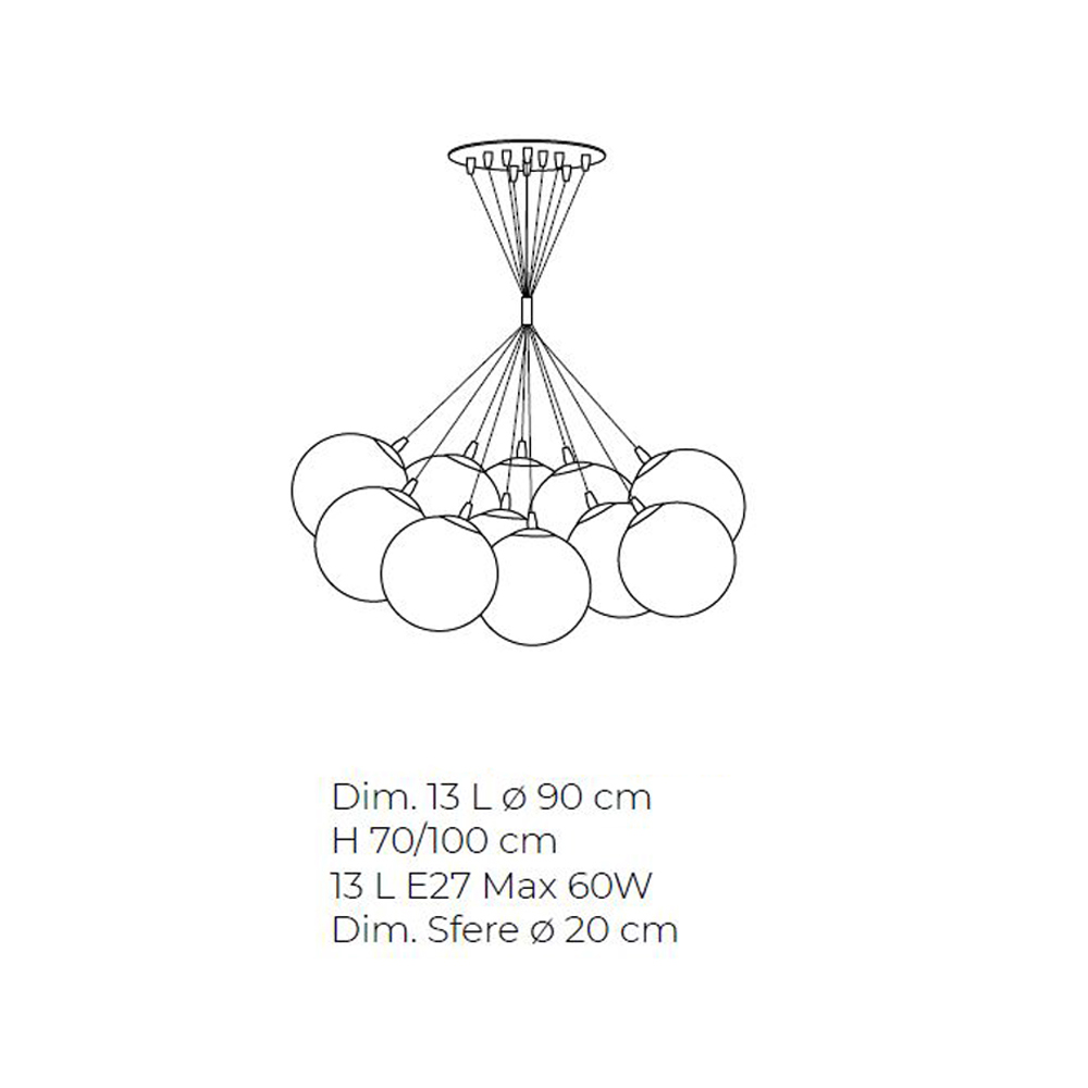 vidro soprado à mão ideal para preencher e iluminar grandes espaços como salas de estar ou de jantar, graças a uma