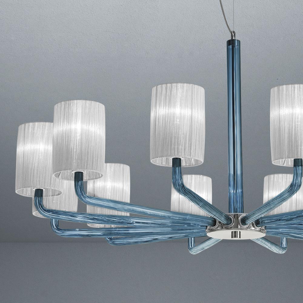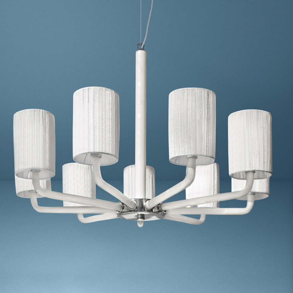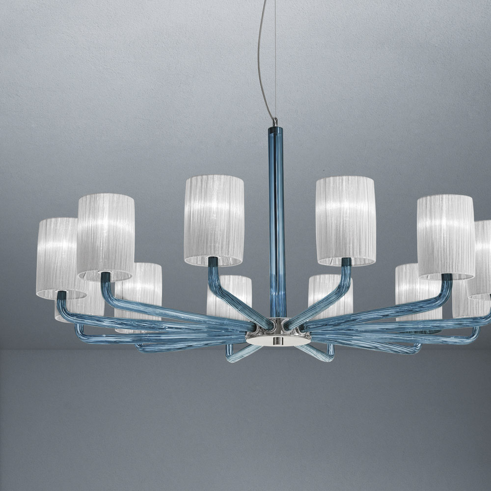 Lustre de vidro e metal Veneza com abajures de tecido Made in Italy.
