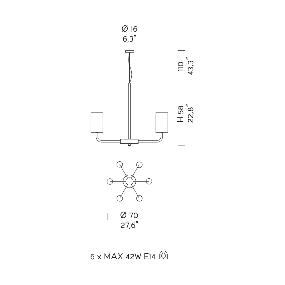Lâmpadas (não incluídas) : 6, 9 ou 12 x MAX 42W E14
