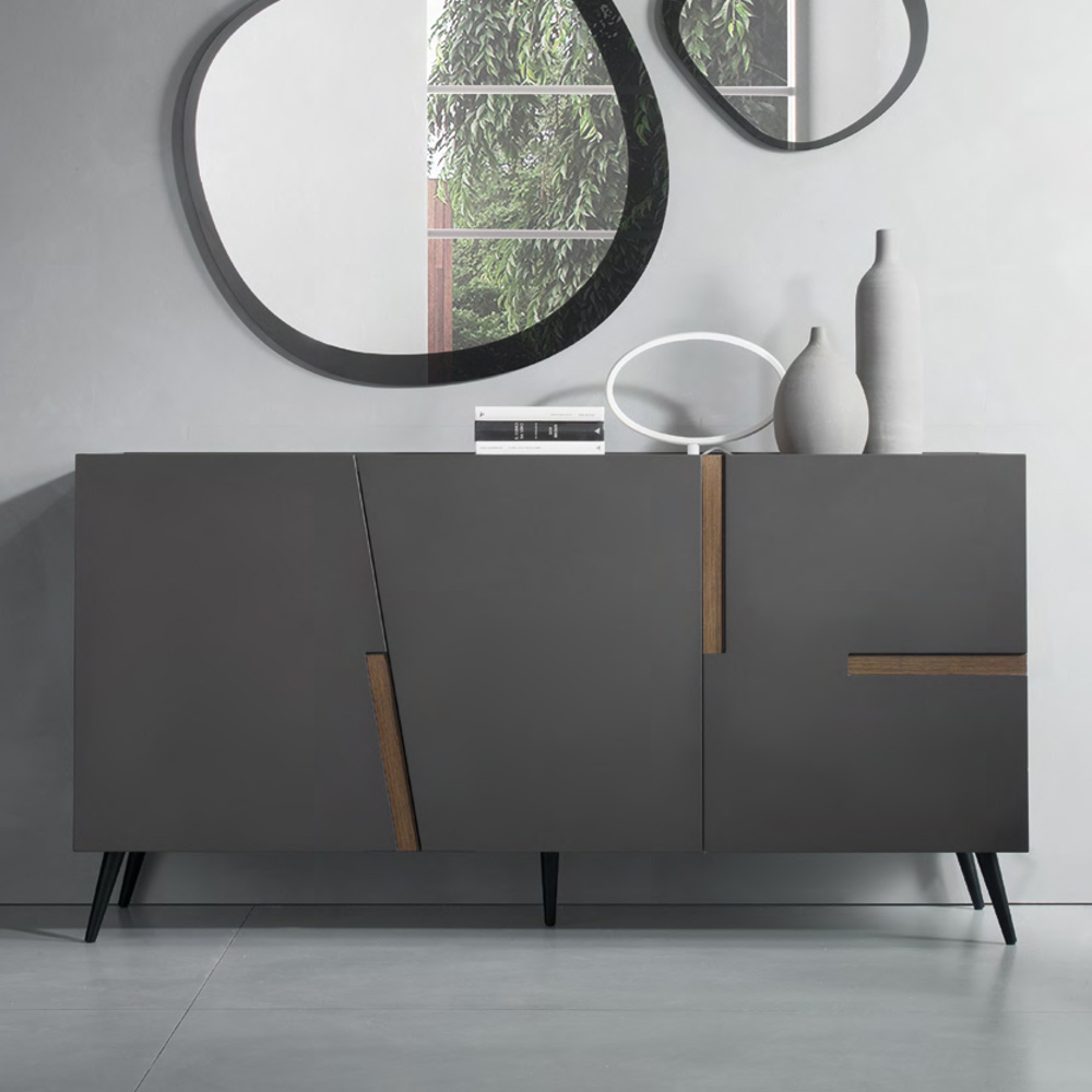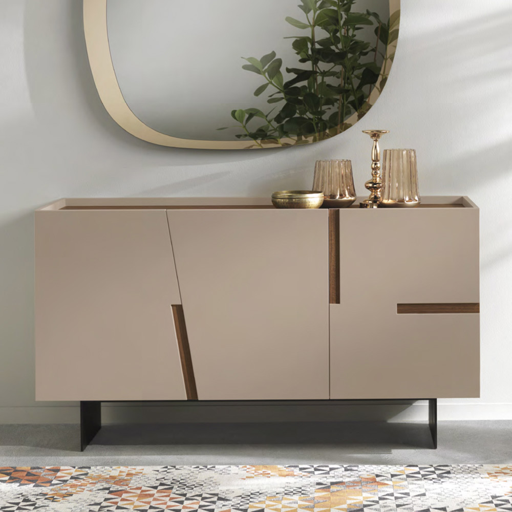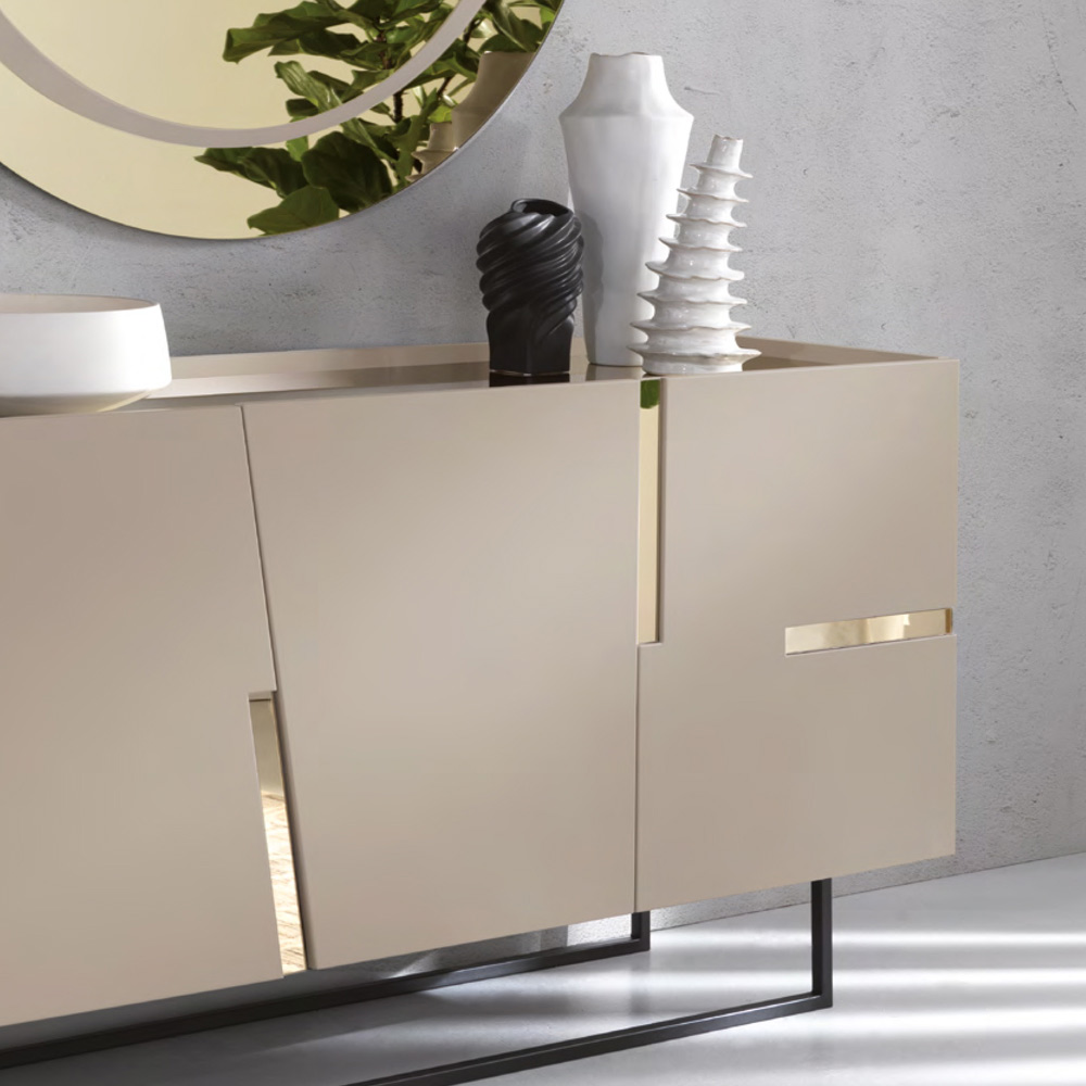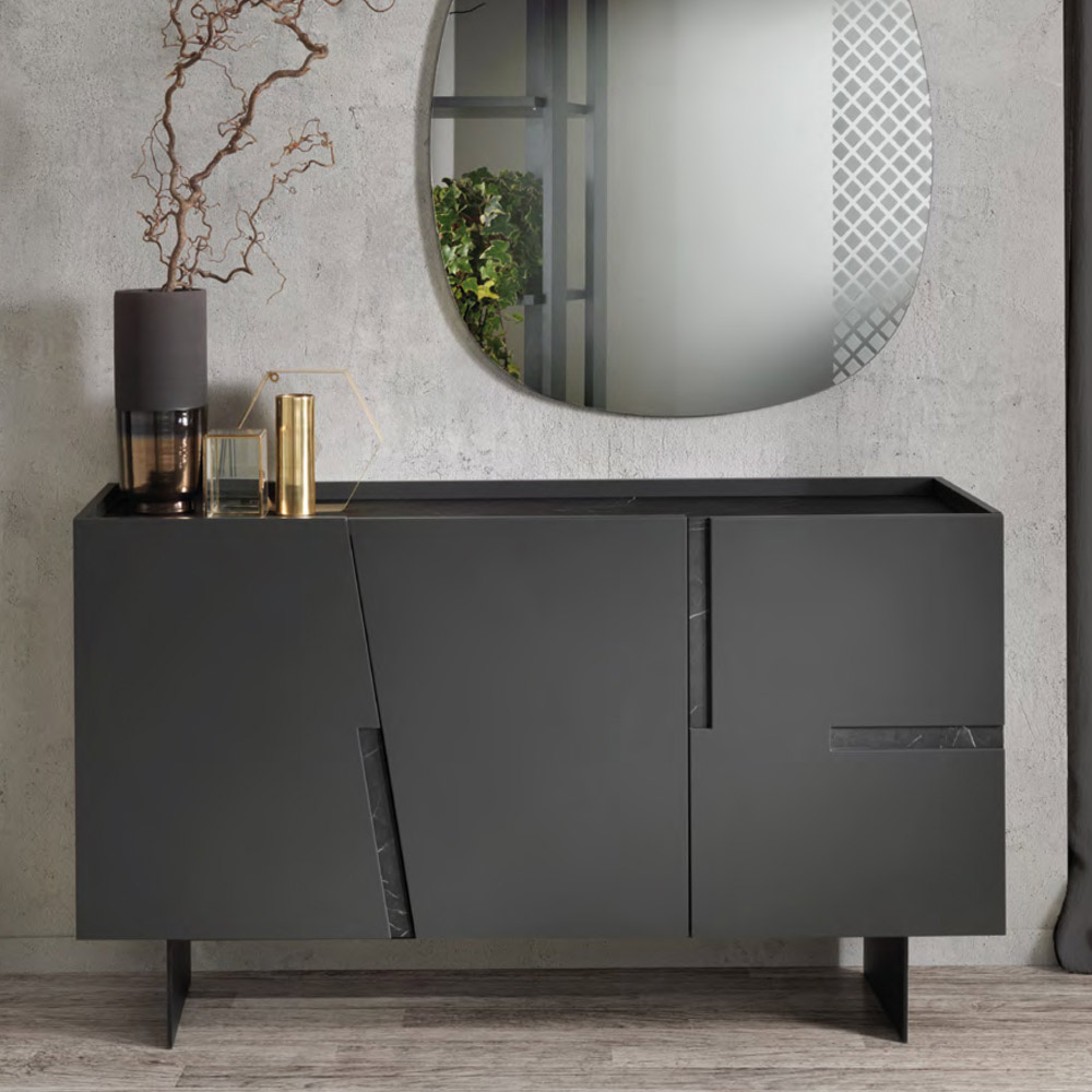 Aparador de sala em melamina com encaixes em laminado ou espelho Made in Italy.
