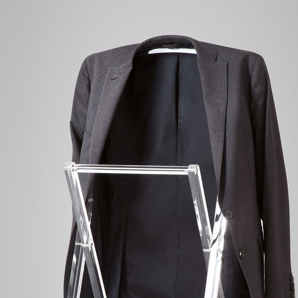 Cabide de manobrista dobrável em cristal acrílico transparente fabricado na Itália.