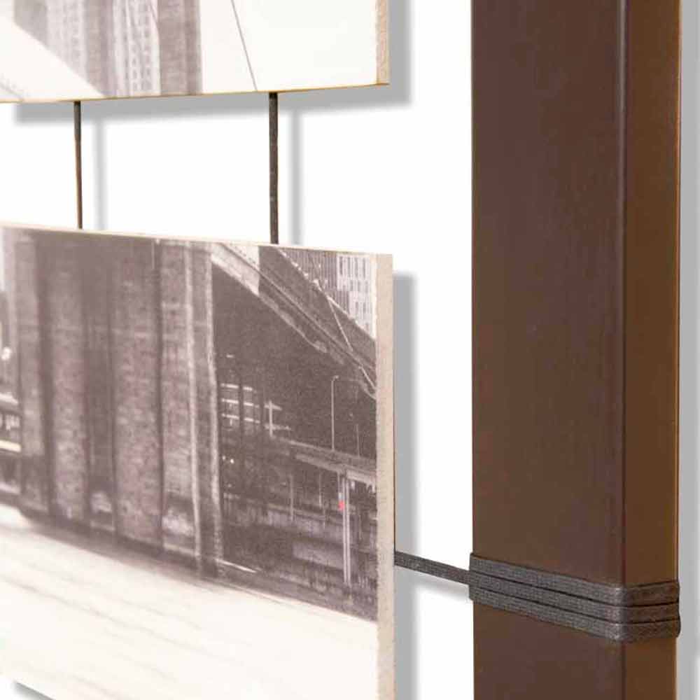 Pintura de parede de design moderno com moldura de madeira lacada em castanho escuro e dez painéis de MDF. Os painéis de suspensão são decorados à mão.