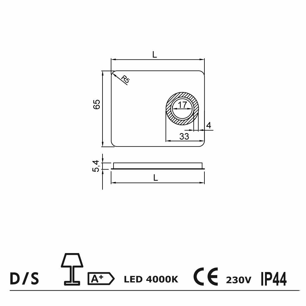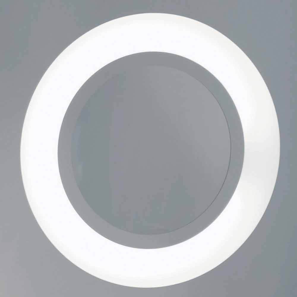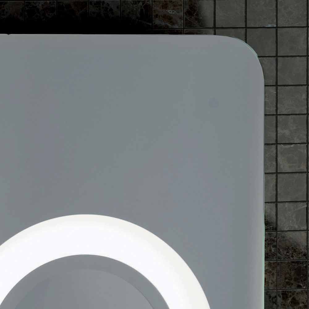 Espelho de maquilhagem com luz LED integrada e rebordos redondos.