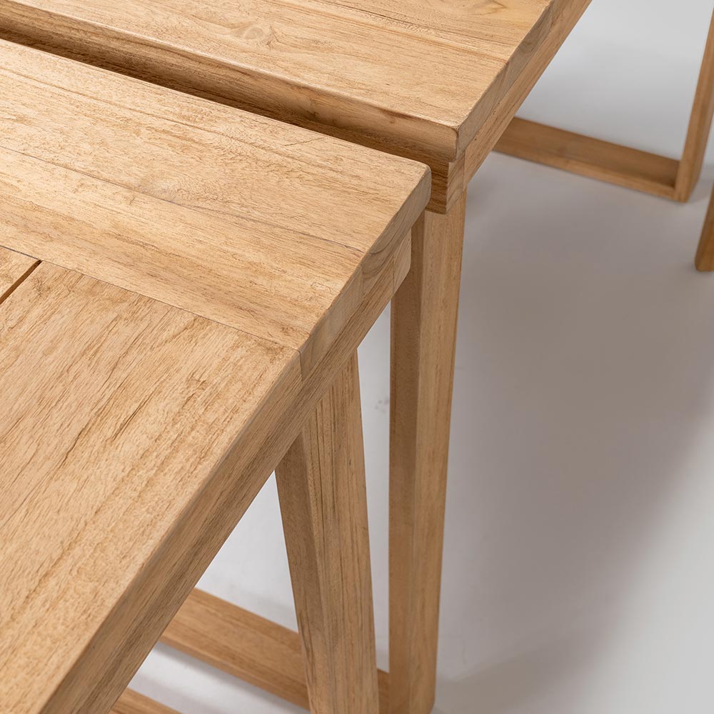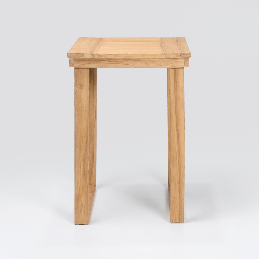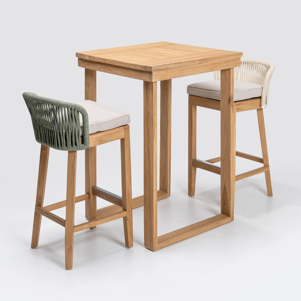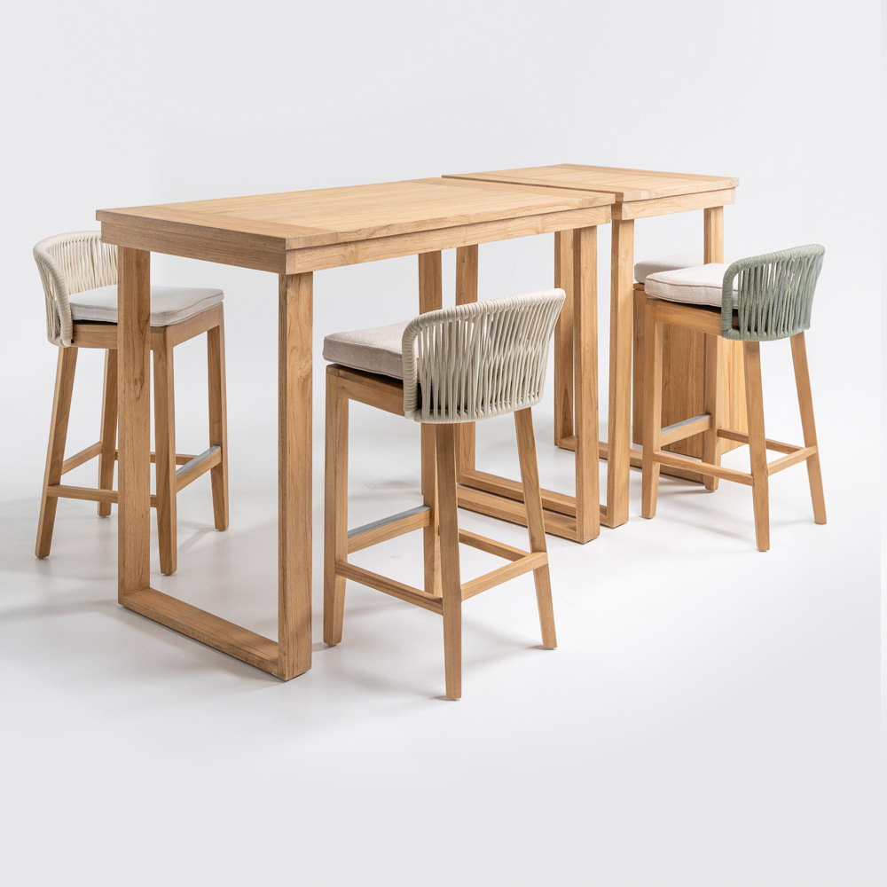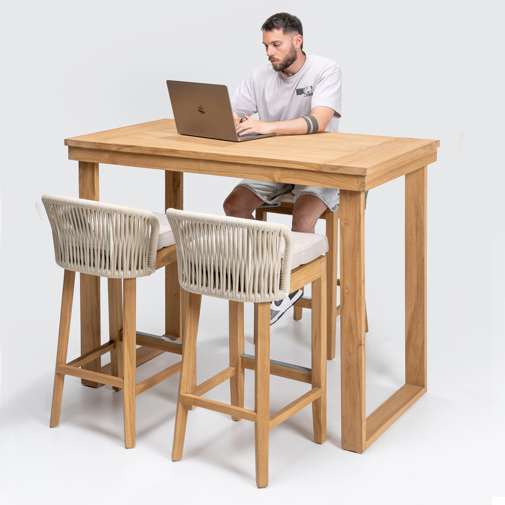 Esta elegante mesa alta de bar é a combinação perfeita entre design sofisticado e materiais naturais . Fabricada com uma estrutura sólida de teca natural escovada , cada detalhe foi pensado para garantir durabilidade e resistência , enquanto o tampo de teca natural escovada oferece uma superfície lisa e refinada, realçando a beleza da madeira com seus veios únicos .