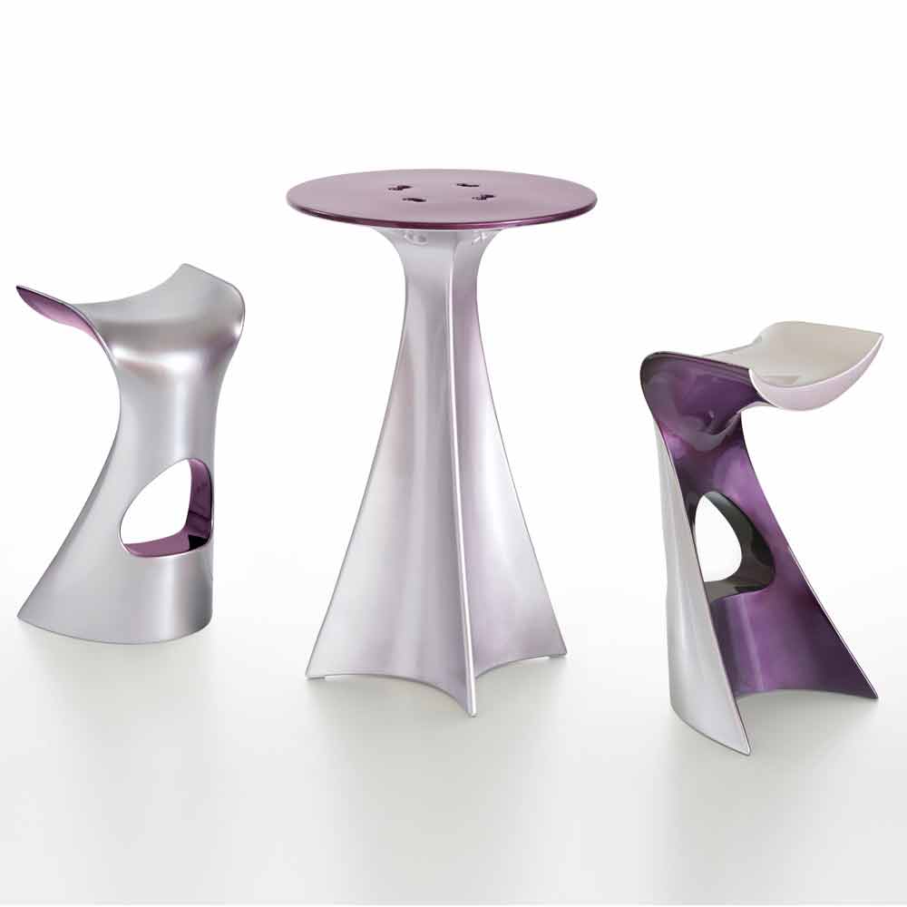 base prateada combina com o tampo roxo. Para móveis que marcam, a