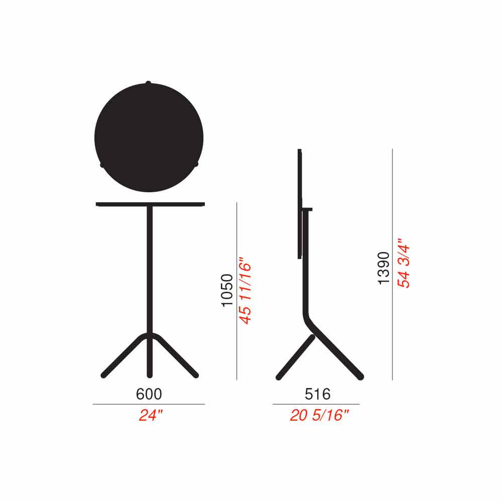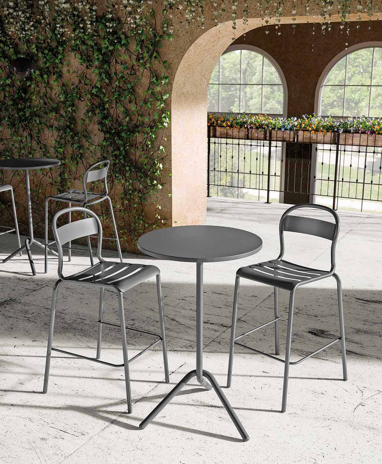 Mesa alta redonda para exterior em metal e chapa empilhável e dobrável Fabricado em Itália.