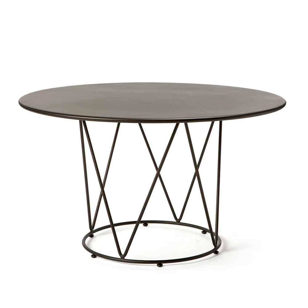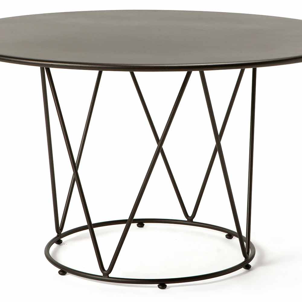 Mesa redonda moderna para área externa, feita inteiramente de ferro galvanizado com revestimento em pó, fabricada na Itália.