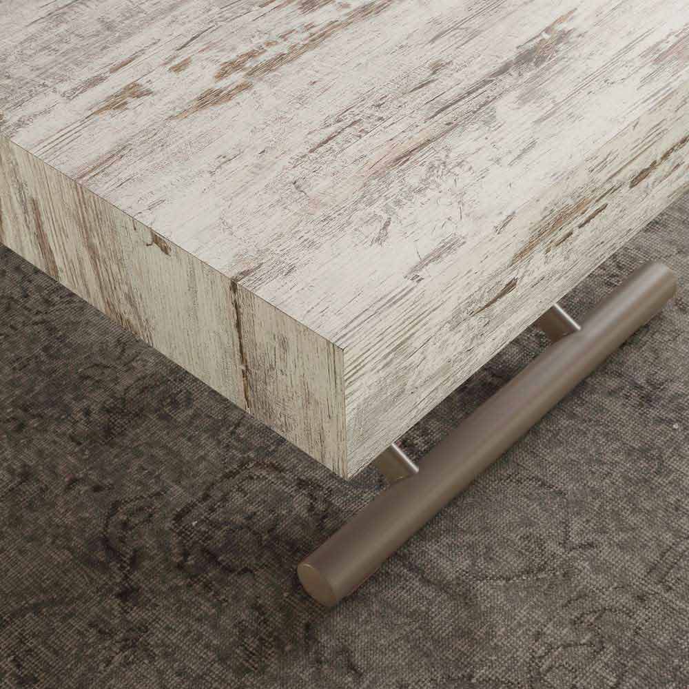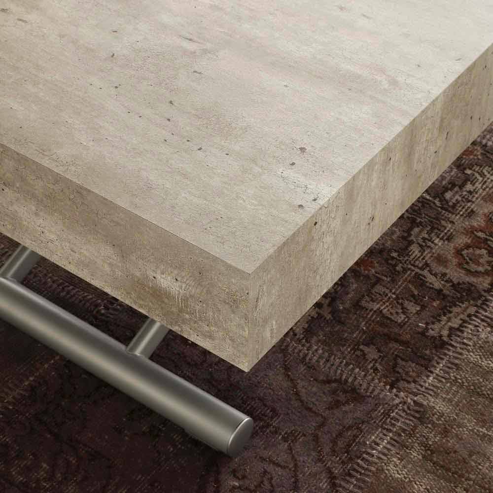 Palau pode ser usado como uma mesa de centro ou uma mesa de jantar prática. Estrutura em metal e tampo em melamina de alta qualidade, disponíveis em dois acabamentos: cimento ou vintage. A base da mesa não atrapalha as pernas dos convidados.
