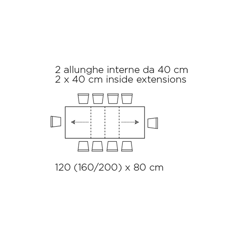 - comprimento 120/200 cm x profundidade 80 cm x altura 77 cm