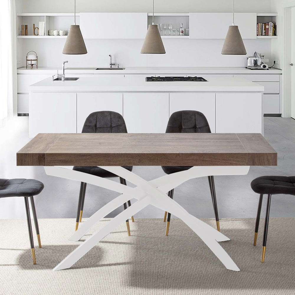 metal pintado . O tampo tem a possibilidade de ser estendido até um máximo de 280 cm graças às duas extensões da mesma cor posicionadas no interior da mesa. Graças a esta característica, a mesa revela-se extremamente