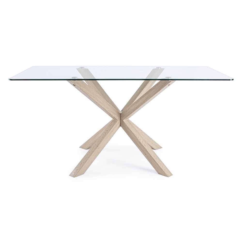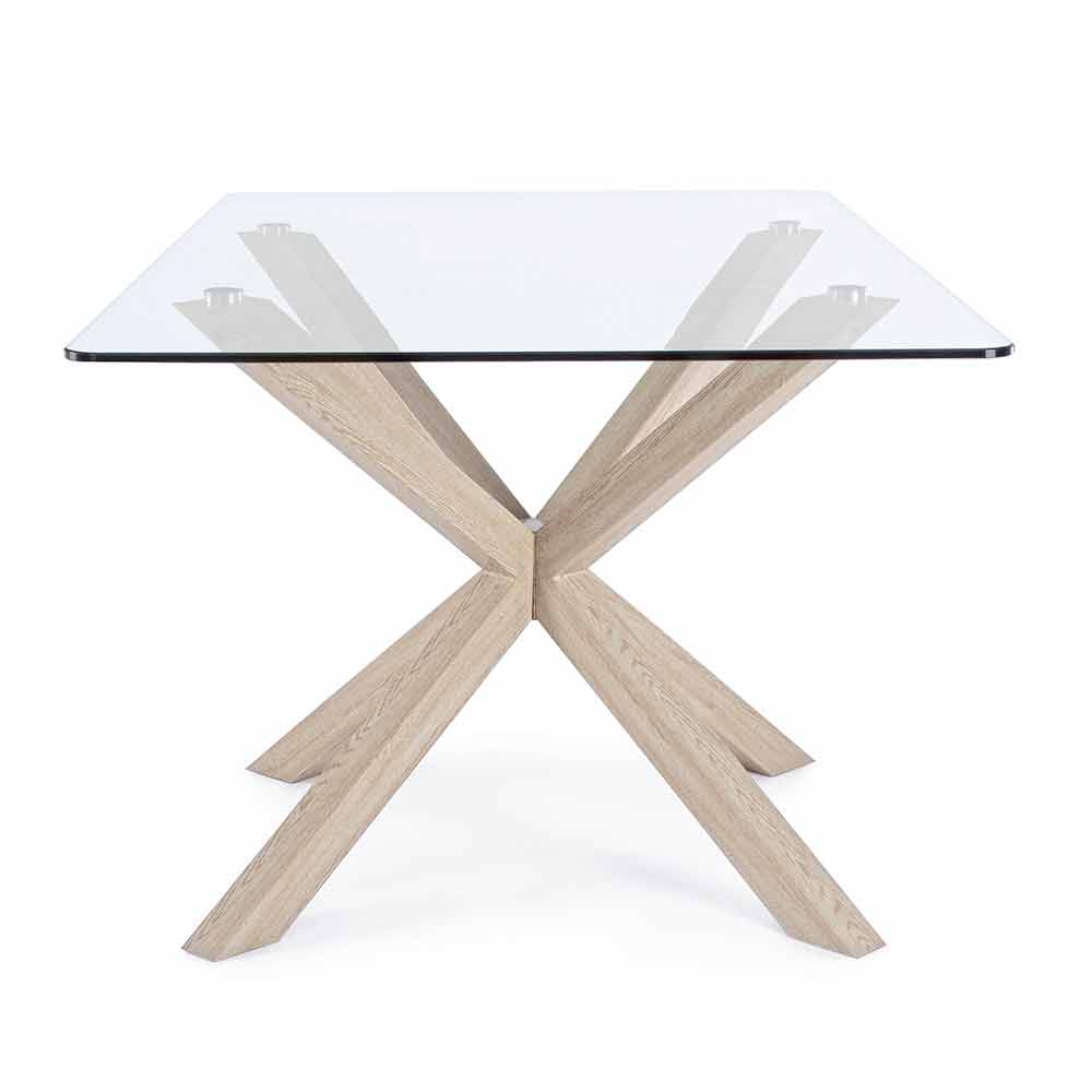 Mesa de Jantar em Vidro e Pés em Carvalho ou Nogueira Canaletto - Aschio