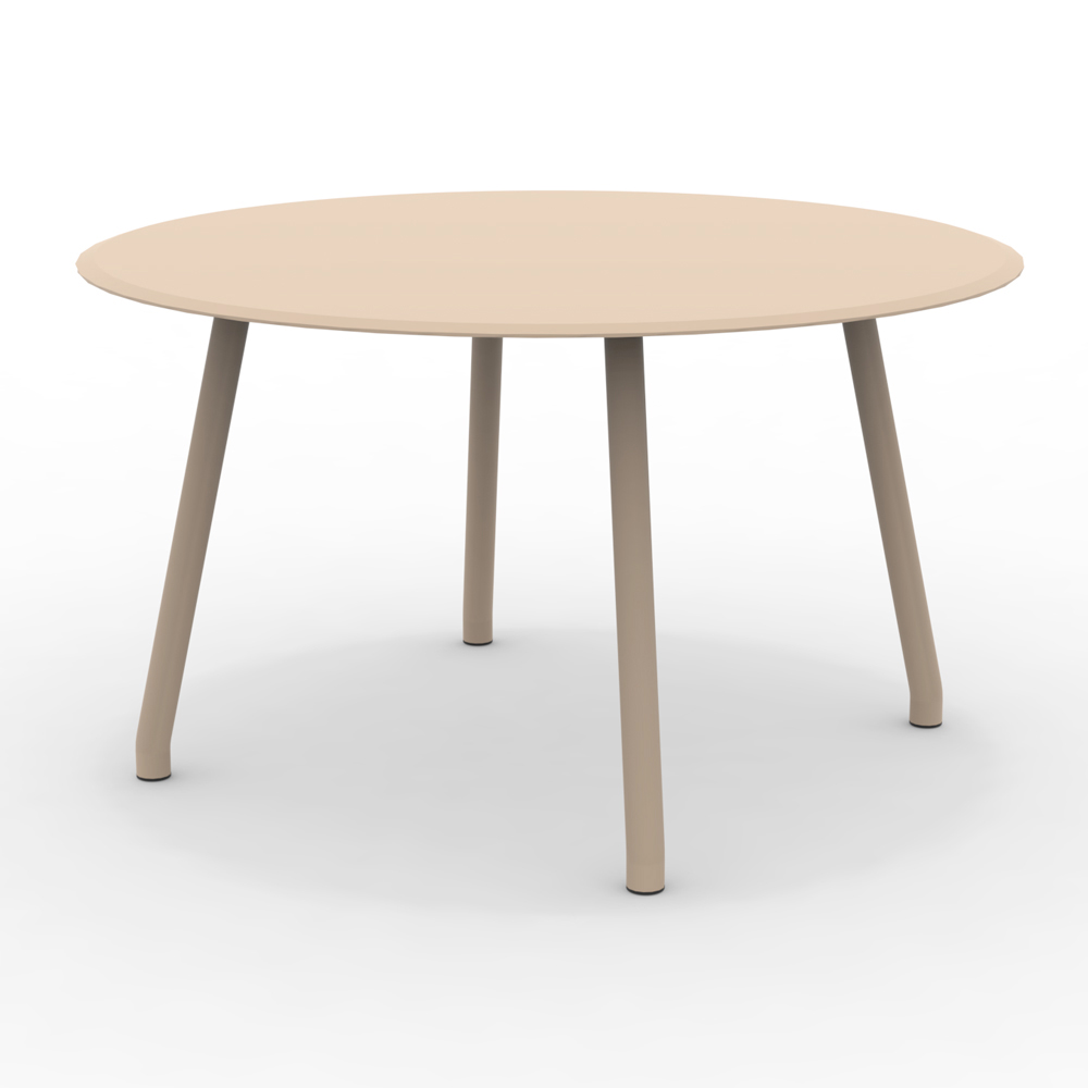 Seu topo redondo oferece uma ampla superfície de apoio, ideal para receber amigos e familiares em momentos agradáveis ao ar livre. As pernas levemente inclinadas conferem estabilidade e um toque de elegância, enquanto o design minimalista se adapta facilmente a qualquer decoração externa.