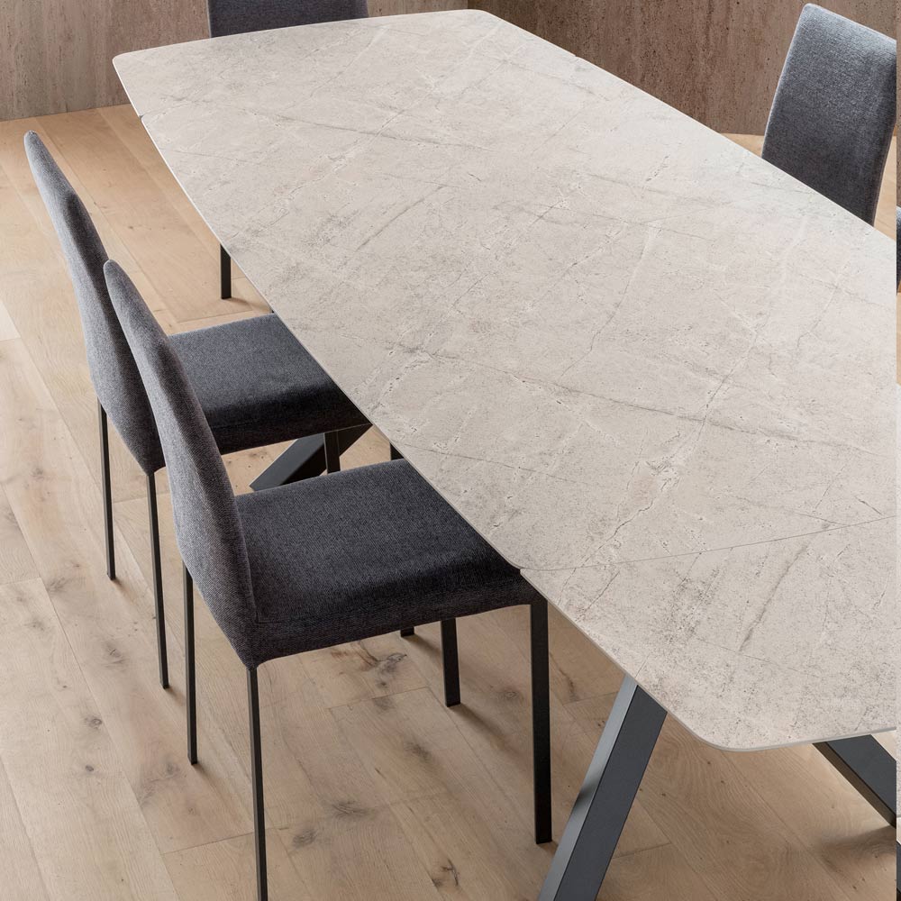 Graças ao sistema de extensão integrado com extensões laterais , a mesa se estende facilmente, garantindo a máxima flexibilidade em todas as ocasiões, desde almoços diários até reuniões com vários convidados.