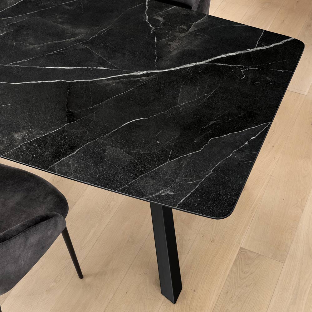 Elegância absoluta e materiais de excelência: esta mesa fixa em Laminam e metal foi pensada para quem deseja trazer para sua casa ou para um espaço comercial um móvel com forte impacto visual , sem abrir mão da resistência e da funcionalidade .