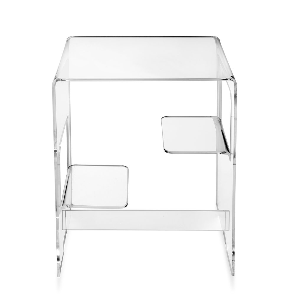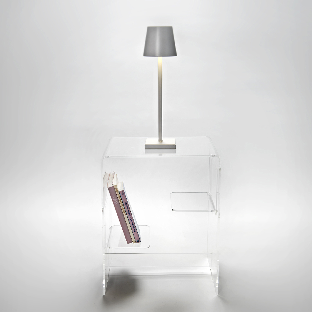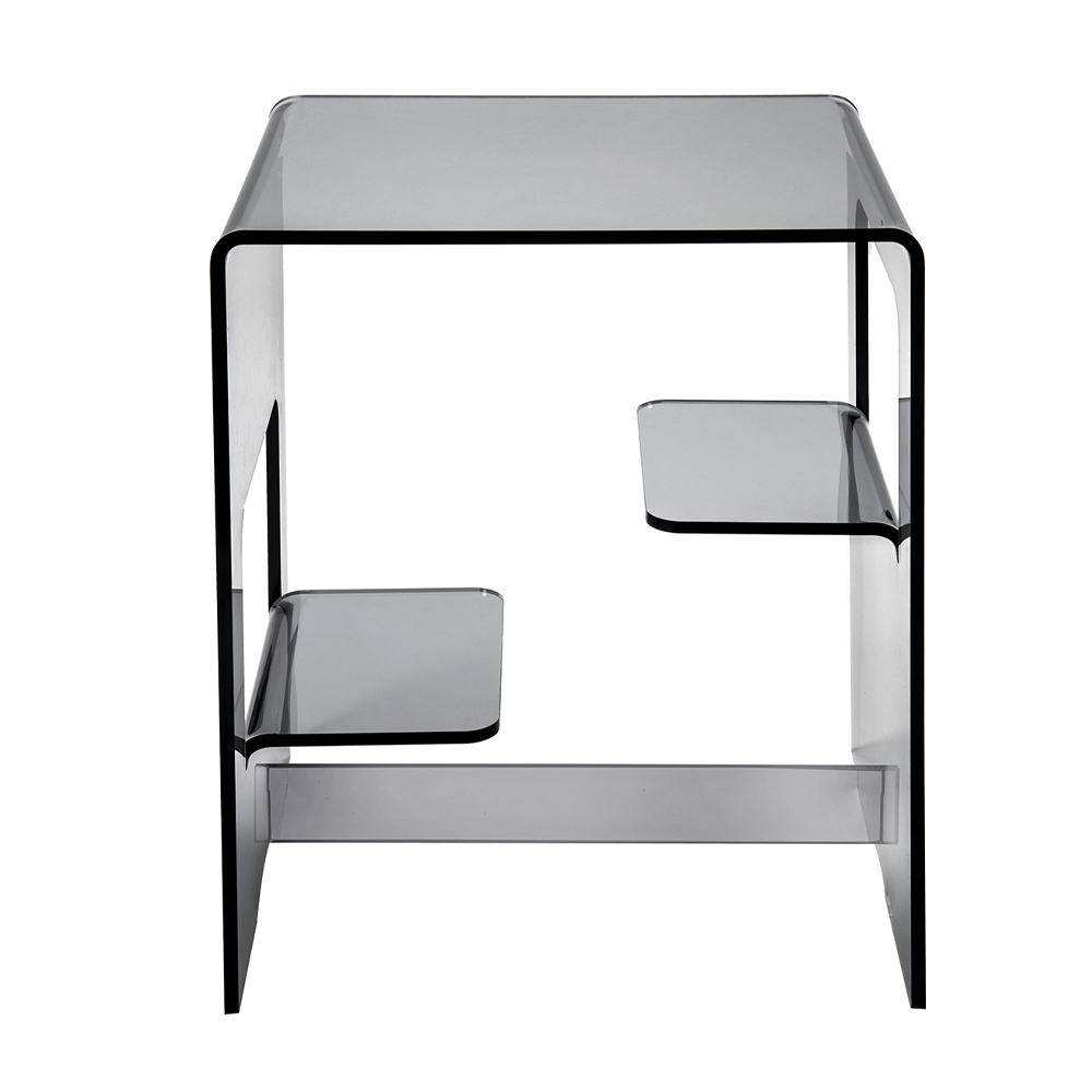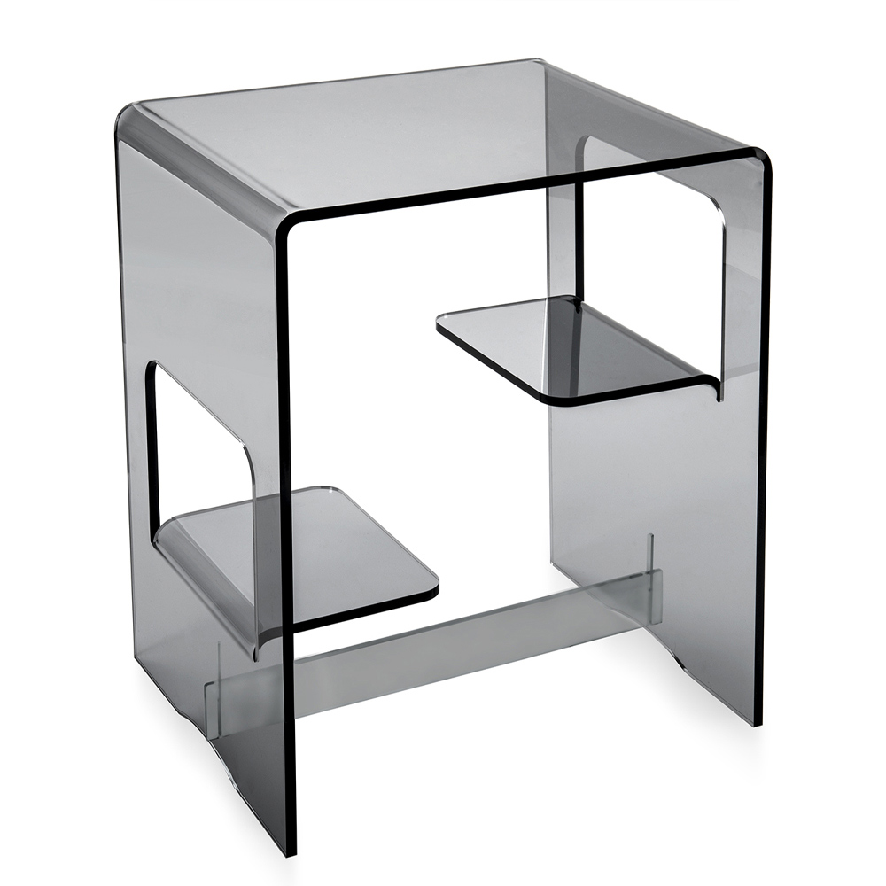 Mesa de cabeceira ou mesa de centro de design moderno em plexiglass transparente ou fumê made in Italy.