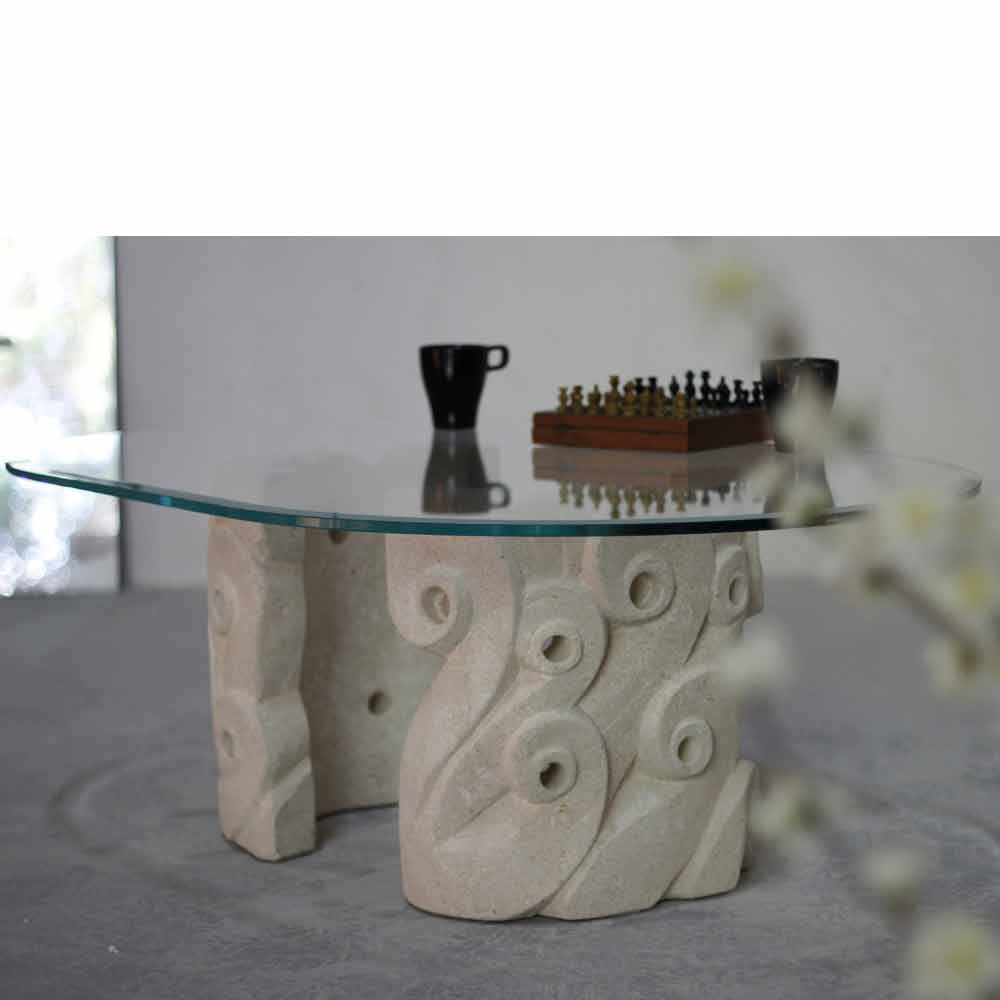 Mesa de café design clássico feito de pedra natural e cristal Lindos