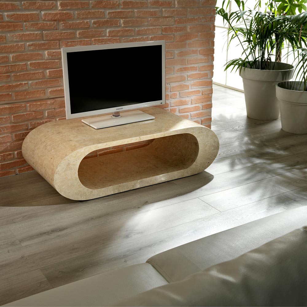 Mesa de centro / móvel de TV em pedra fóssil de ágata branca.