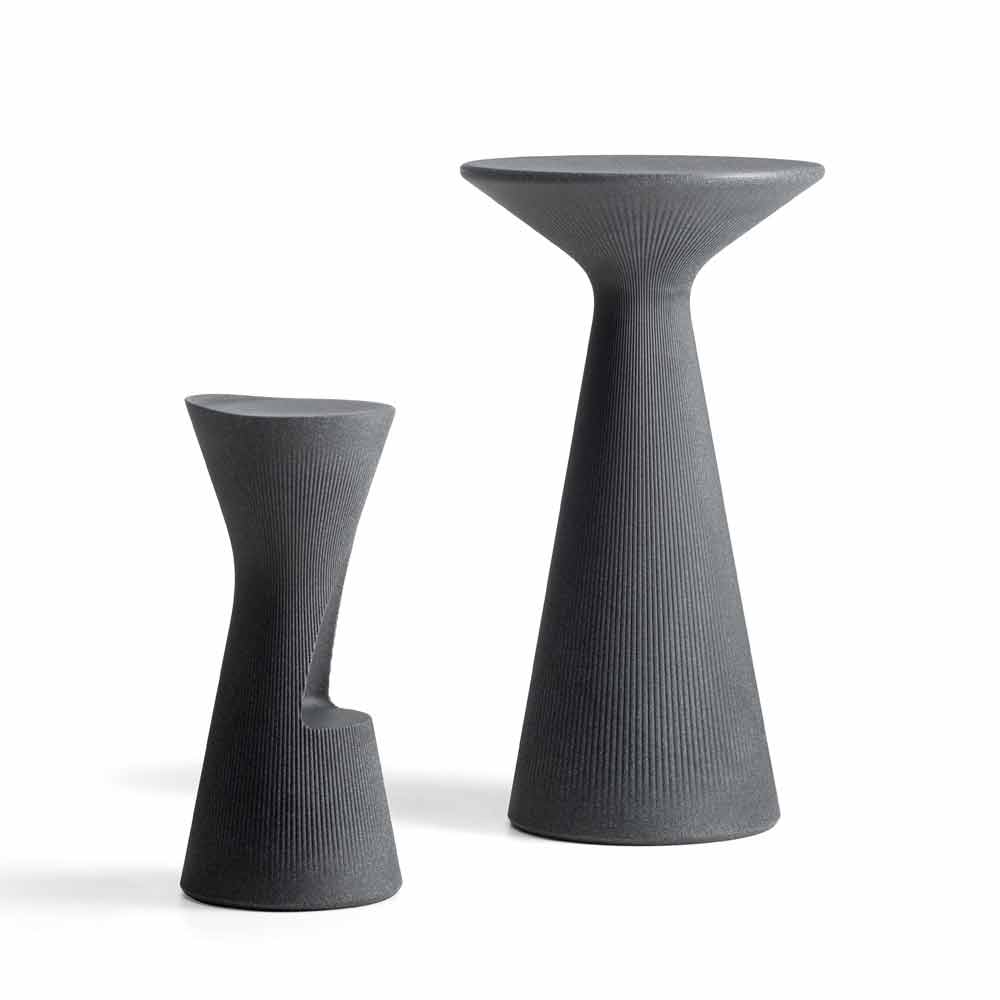 polietileno colorido caracterizado por belos acabamentos que lembram os de materiais naturais. A sua estrutura caracteriza-se por um desenho extremamente simples e linear e é dotada de grande estabilidade graças aos materiais de qualidade utilizados que a tornam uma solução perfeita para ambientes exteriores onde se procura um móvel capaz de conciliar