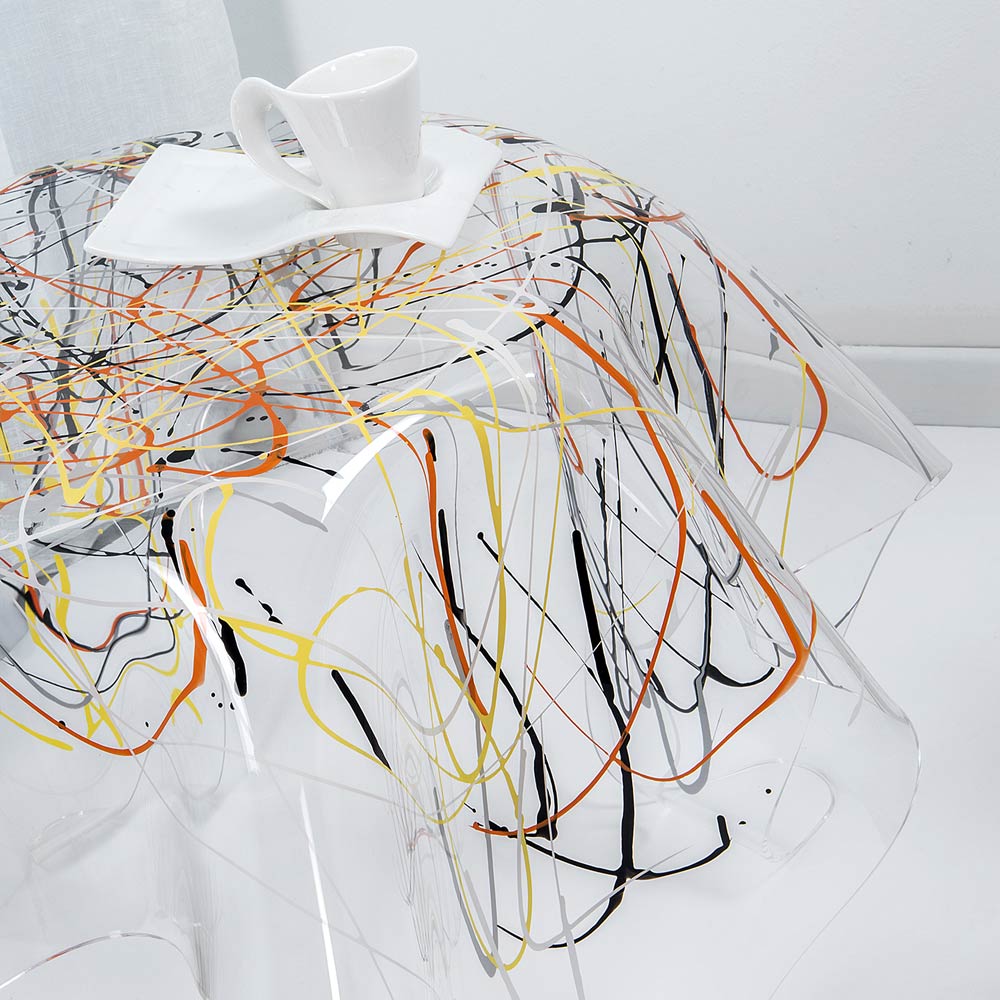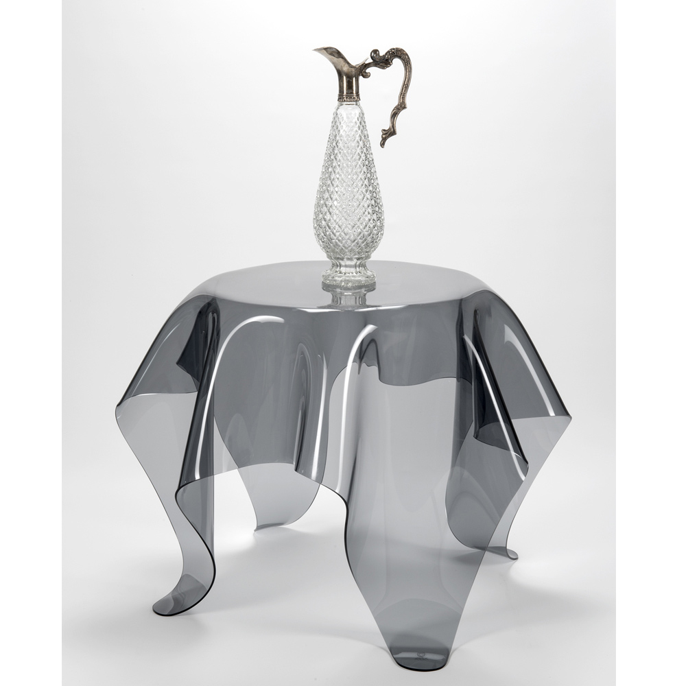 Mesa de centro em plexiglass com cortinas feitas à mão Made in Italy.