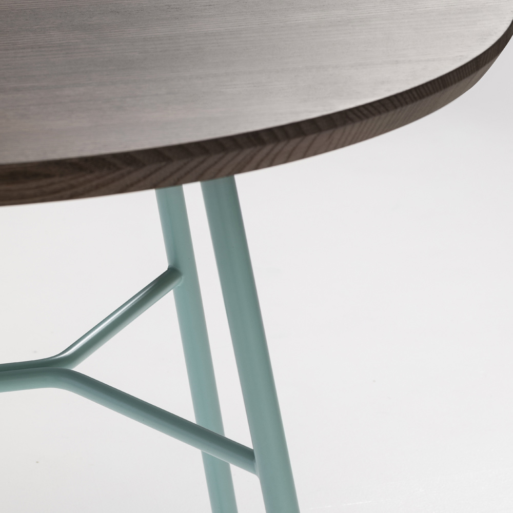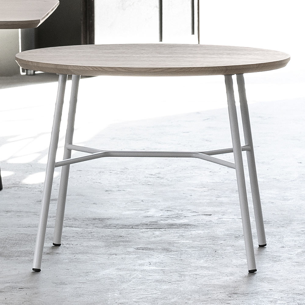 Mesa de centro redonda em madeira maciça e metal Made in Italy.