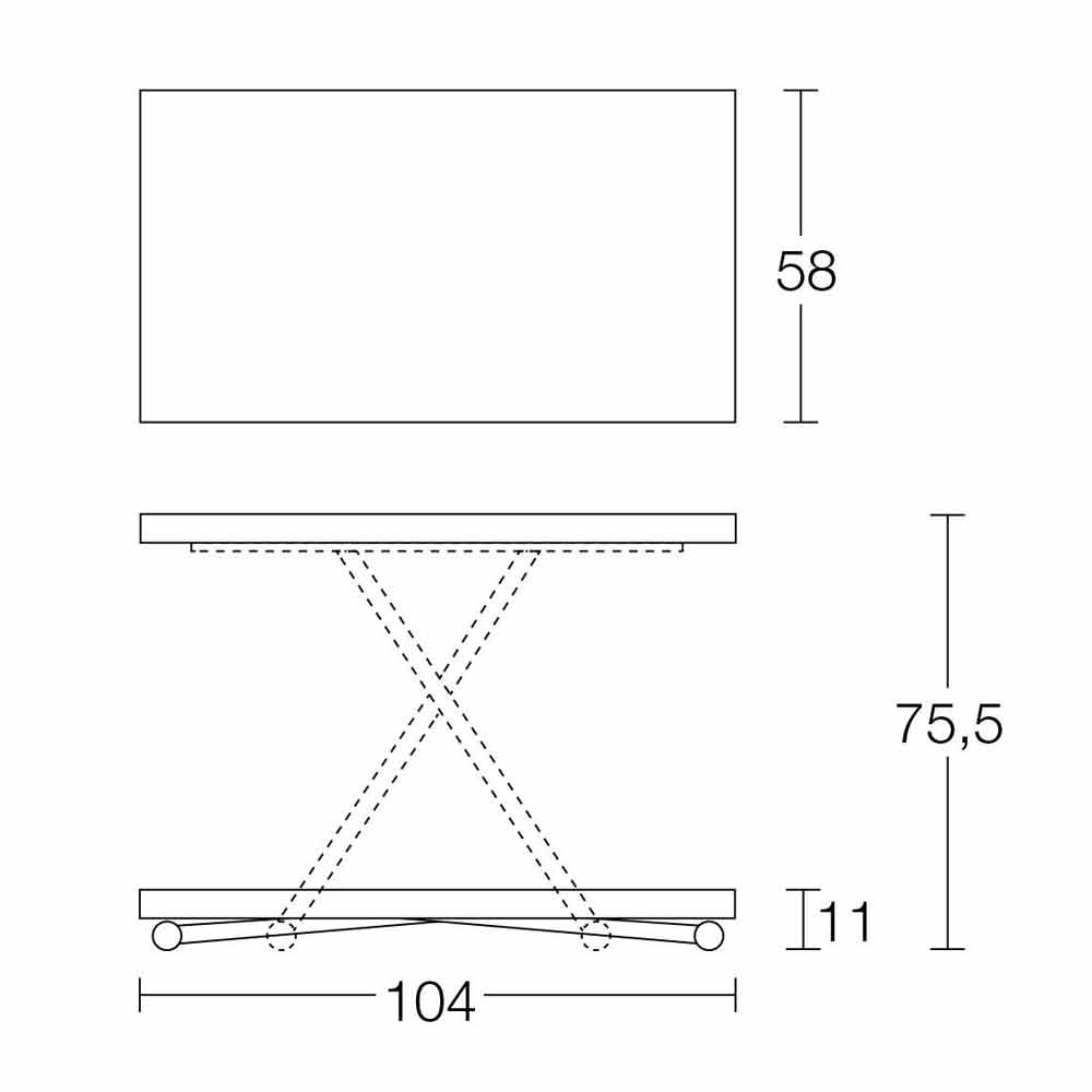 mesa de centro em uma sala de jantar ou mesa de cozinha através de um mecanismo de gás que pode ser ajustado em altura ao milímetro de 11 cm a 75,5 cm.