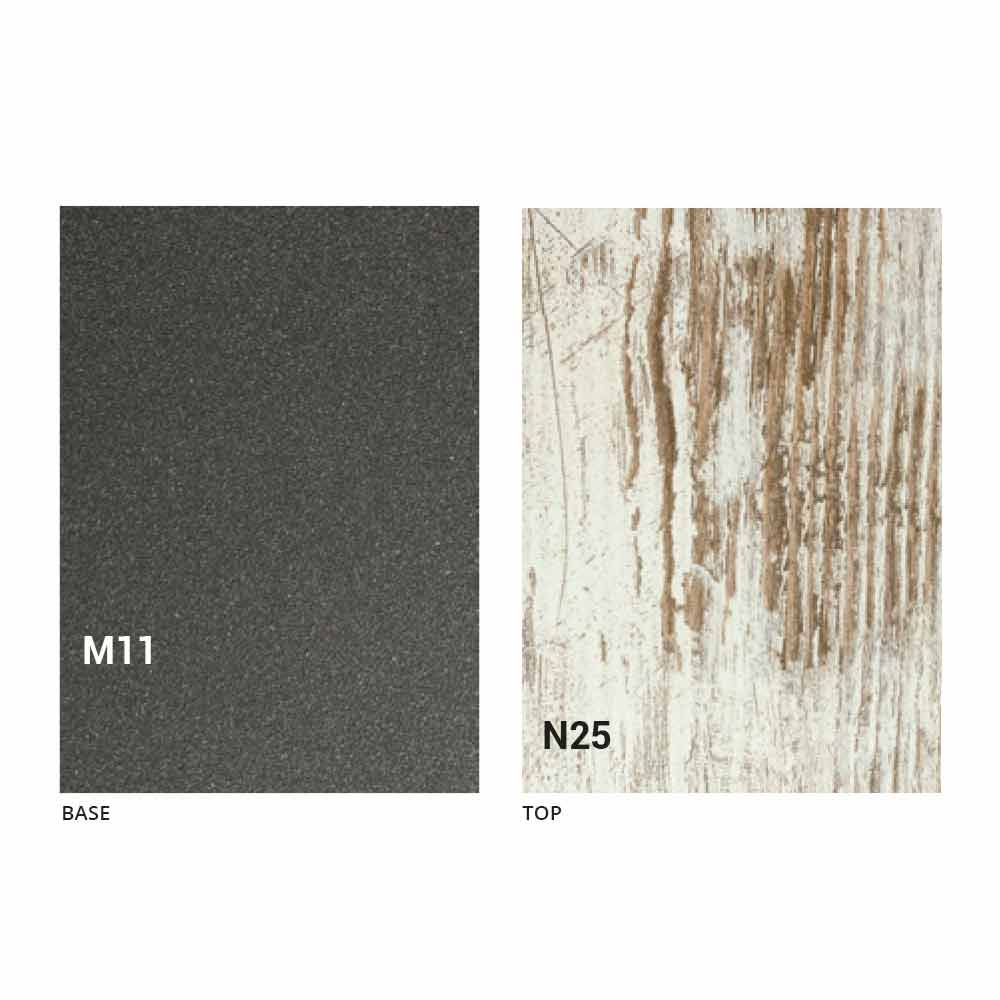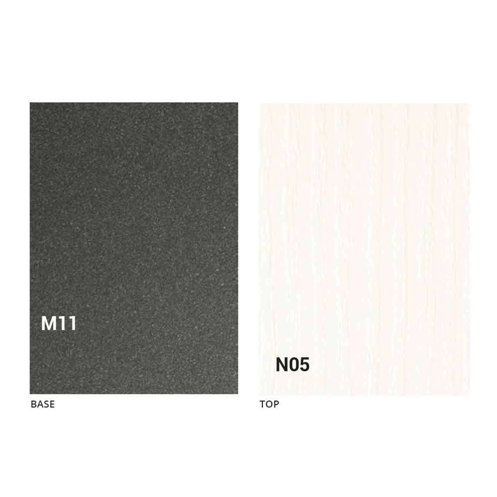 Disponível em diferentes acabamentos:- tampo em madeira de melamina branca matrix,
