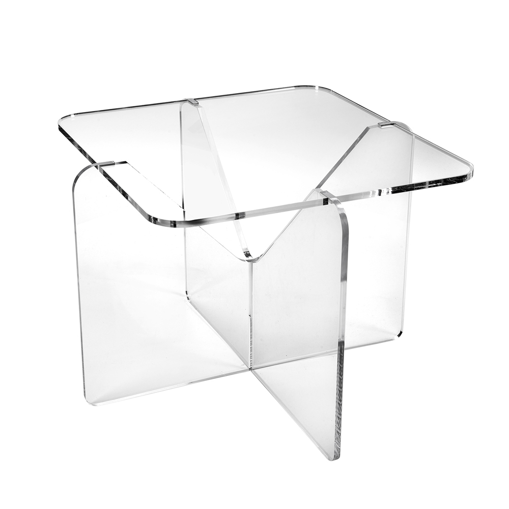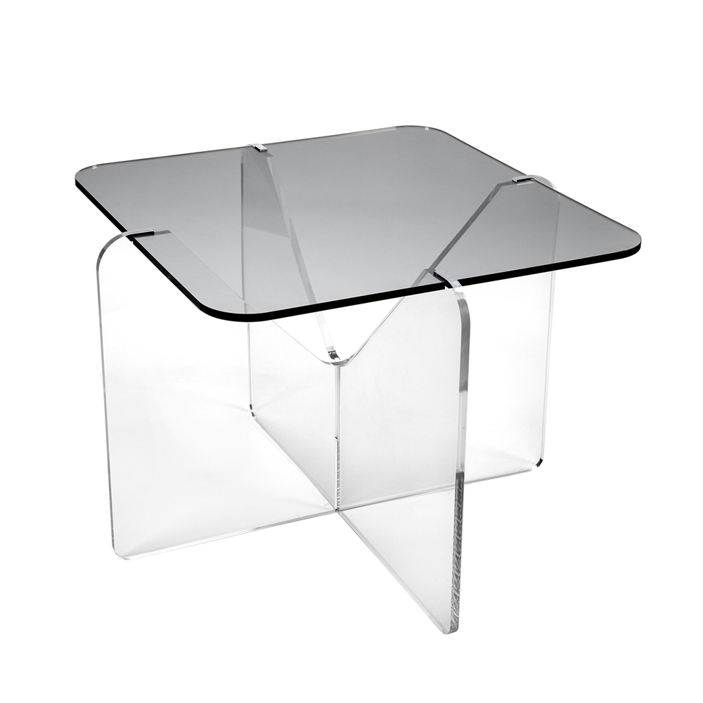 Mesa de centro em plexiglass transparente ou com tampo fumê, desenho quadrado made in Italy.