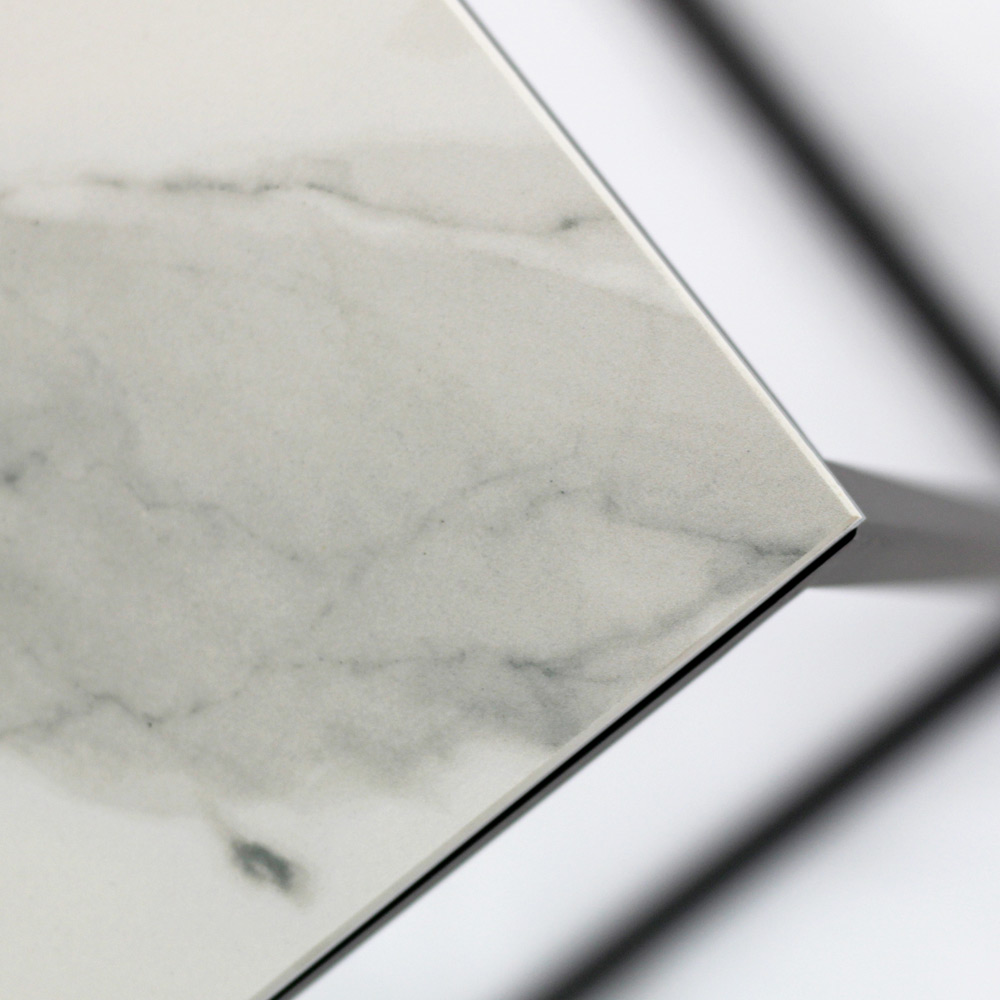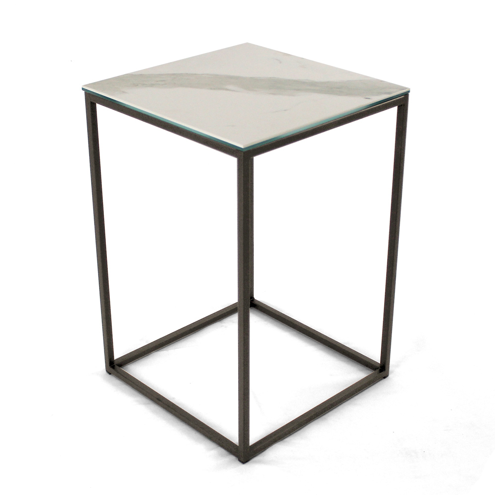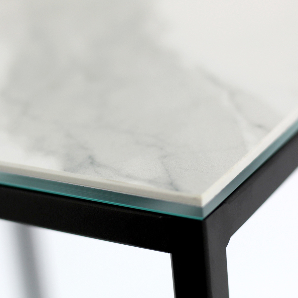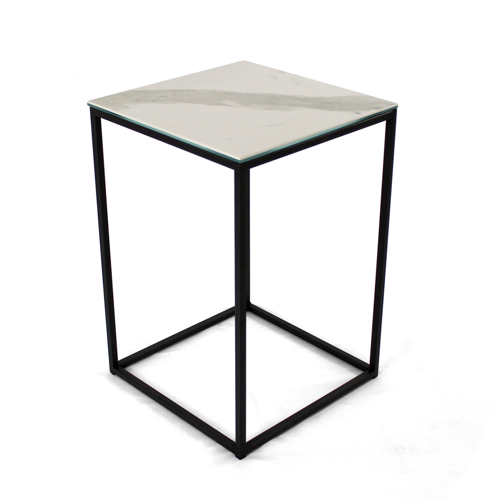 Mesa de centro quadrada com base em aço pintado e tampo em grés estatuário branco com veios mate de 3mm laminado com vidro float de 6mm. As mesas de centro de estilo moderno representam a peça de mobiliário perfeita para completar a decoração de qualquer sala e sala de estar. Estes produtos são únicos, elegantes e ao mesmo tempo funcionais graças aos seus acabamentos simples e harmoniosos que os tornam adequados para qualquer necessidade e ocasião de utilização. Os materiais utilizados na construção garantem grande qualidade e resistência mesmo com o passar do tempo.