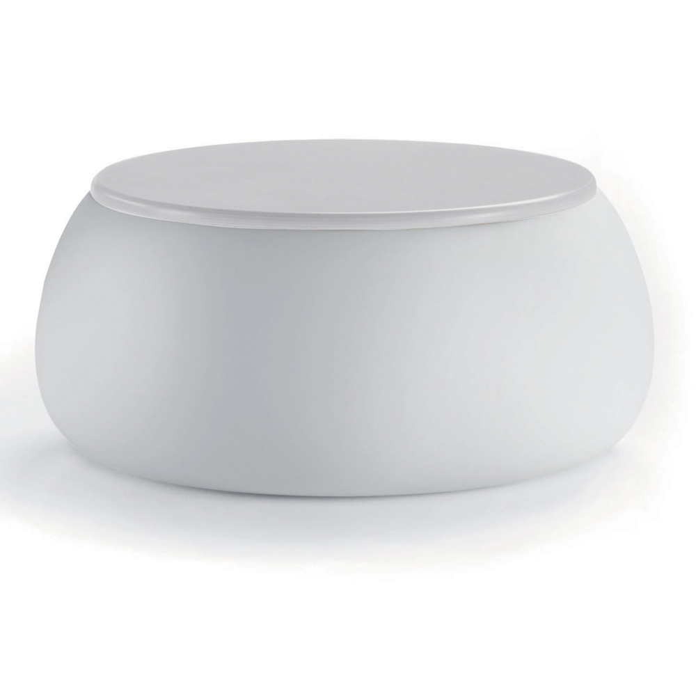 Mesa de centro de jardim com tampo redondo fabricado na Itália em polietileno.
