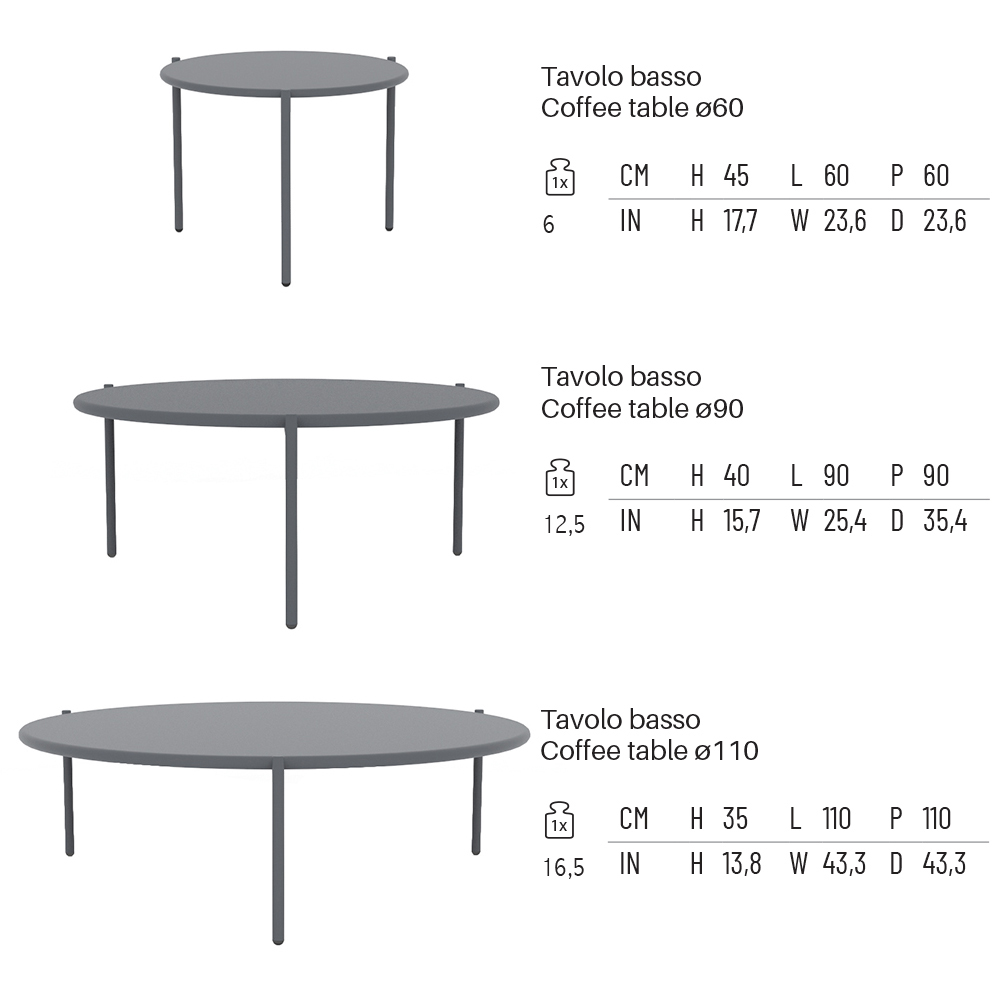 Mesa de jardim em aço galvanizado de vários tamanhos Fabricado na Itália.