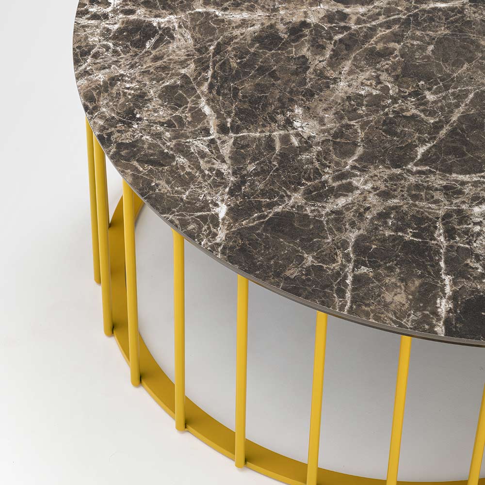 Mesa de centro ao ar livre em vitrocerâmica e metal Made in Italy.