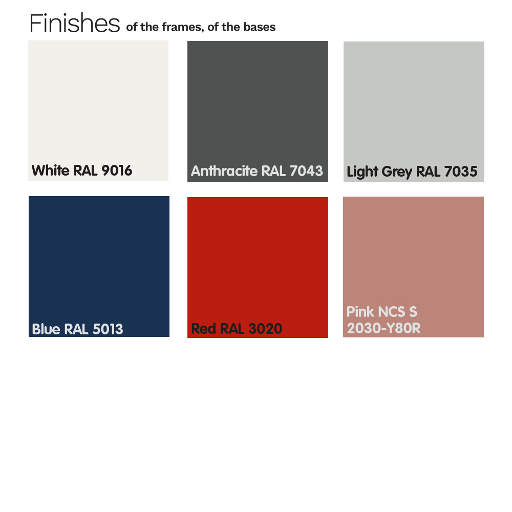 NB : a estrutura e o tampo da mesa estão disponíveis numa vasta gama de acabamentos diferentes.