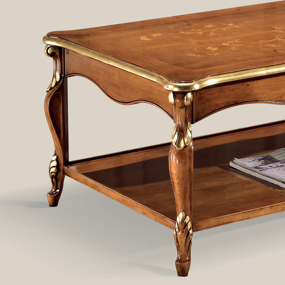 Mesa de centro em nogueira e ouro embutido luxo Made in Italy.