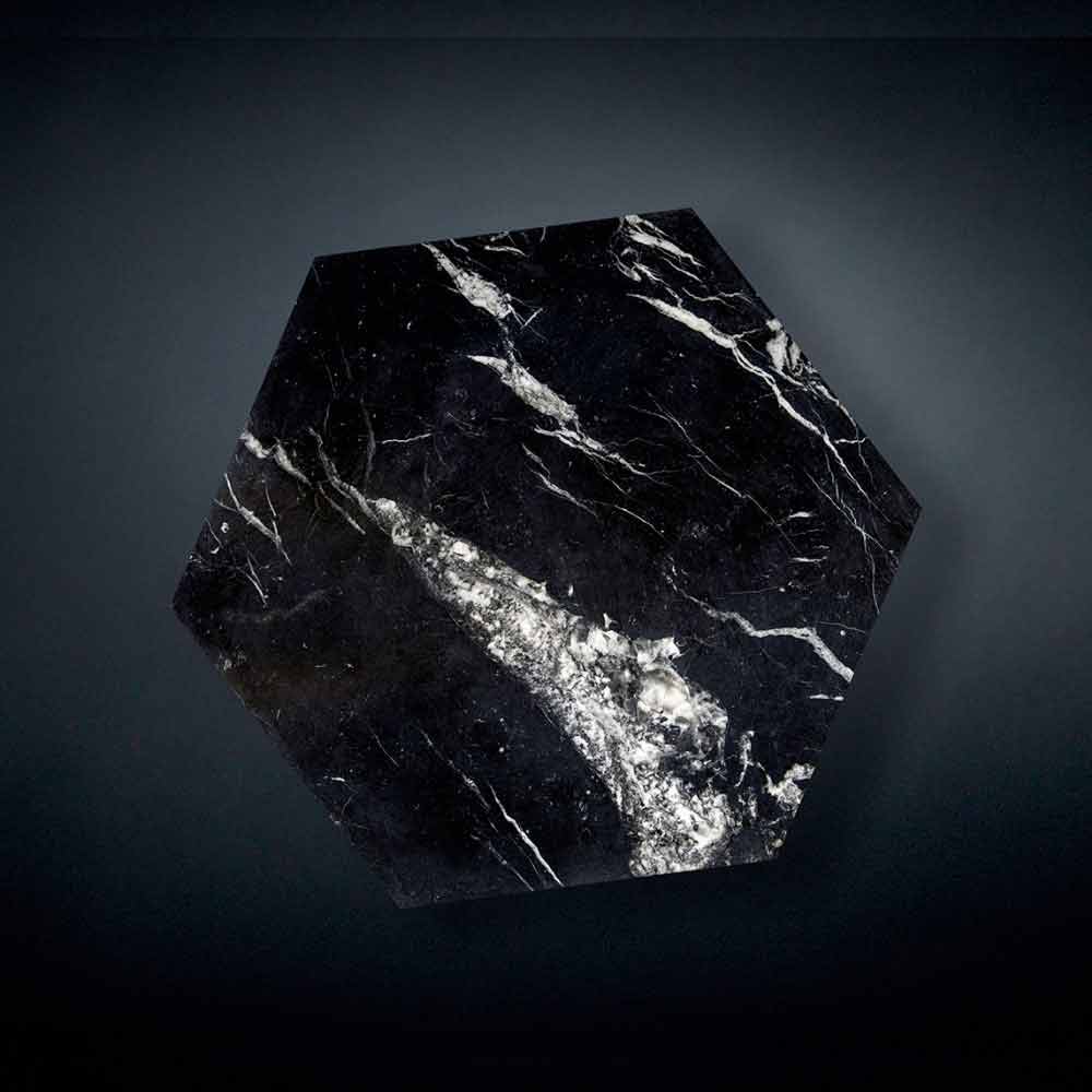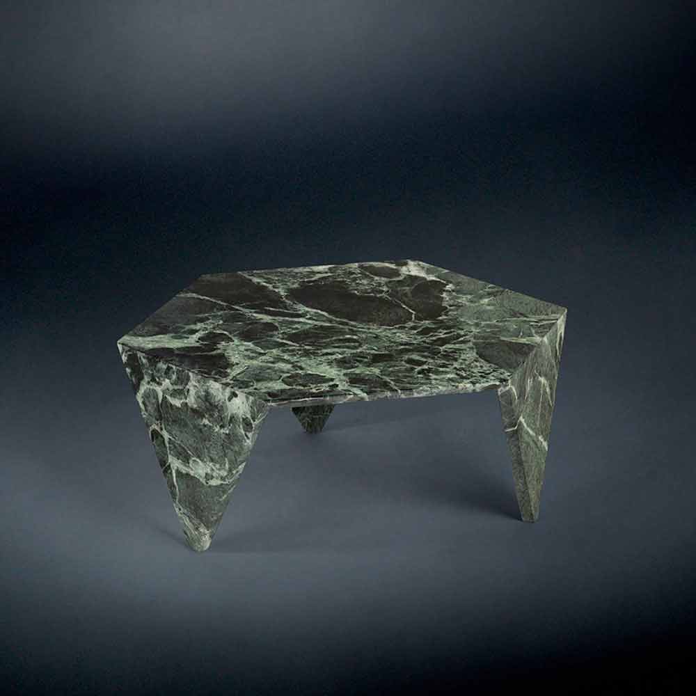 Ruche é uma mesa de café robusta, caracterizada por um design original e moderno. Esta mesa de café especial é feita de mármore e está disponível em quatro diferentes acabamentos: Verde Alpi, Imperador Escuro, Bianco Calacatta e Nero Marquinia. Mesa de centro hexagonal com três pernas.