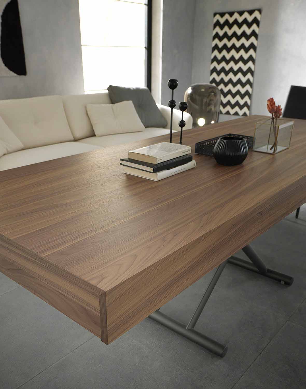 mesa de centro transformável caracteriza-se por linhas elegantes e essenciais que acompanham um design versátil adequado para mobilar qualquer estilo de ambiente.