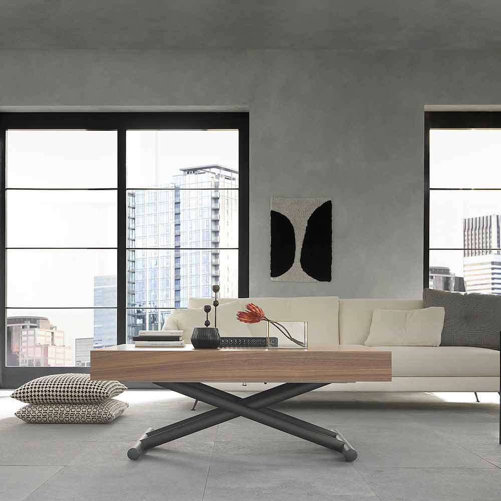 Mesa de centro pequena convertível em mesa de jantar Made in Italy.
