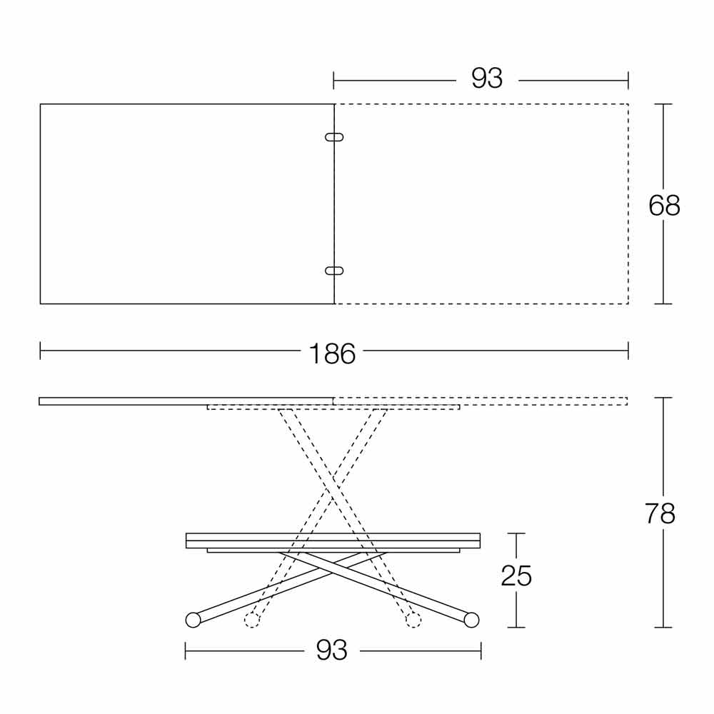 mesa de centro em uma mesa para a sala de jantar ou cozinha , através de um mecanismo de gás ajustável em altura ao milímetro de 28 cm a 78 cm.