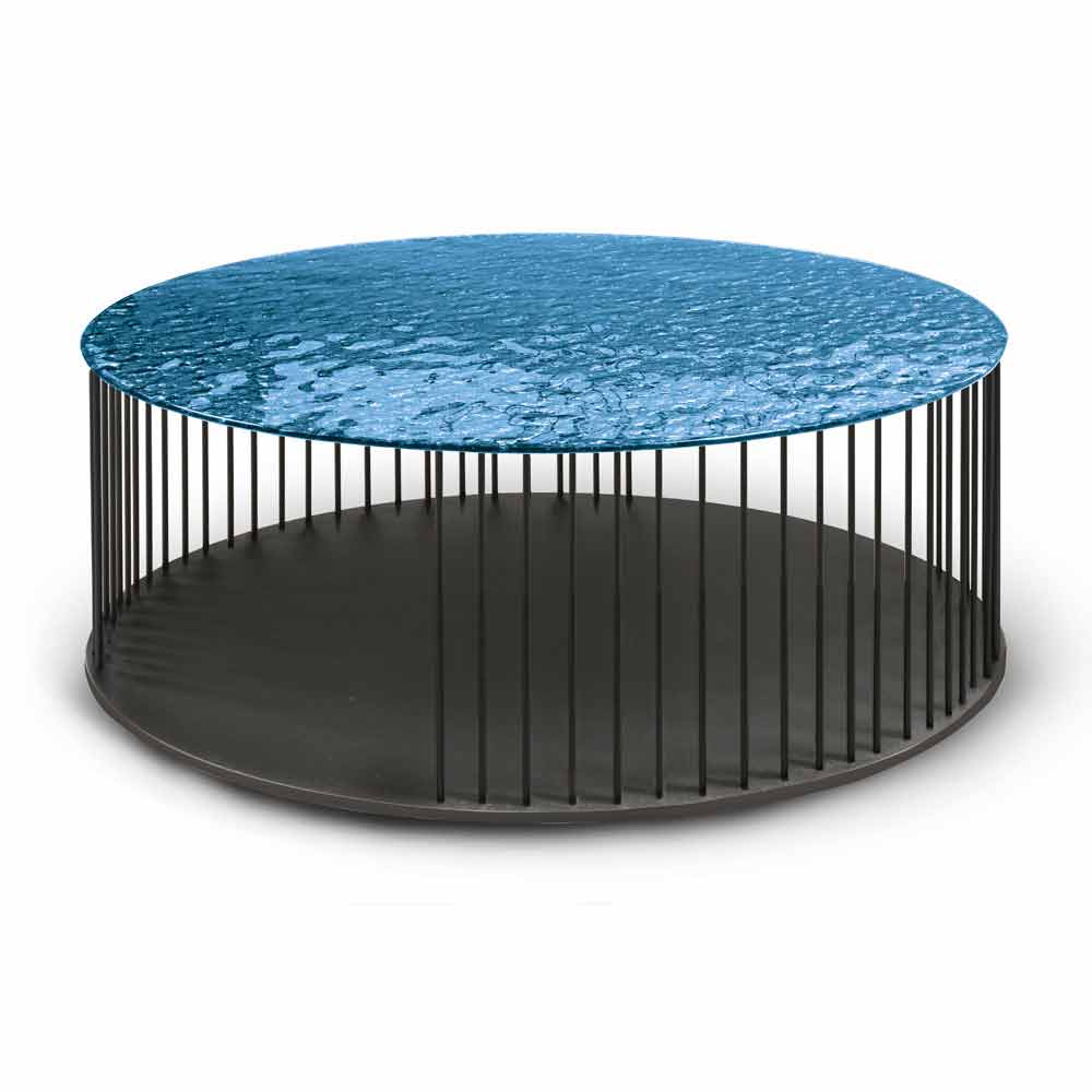 Mesa de centro em cristal forjado e metal preto Fabricado na Itália.