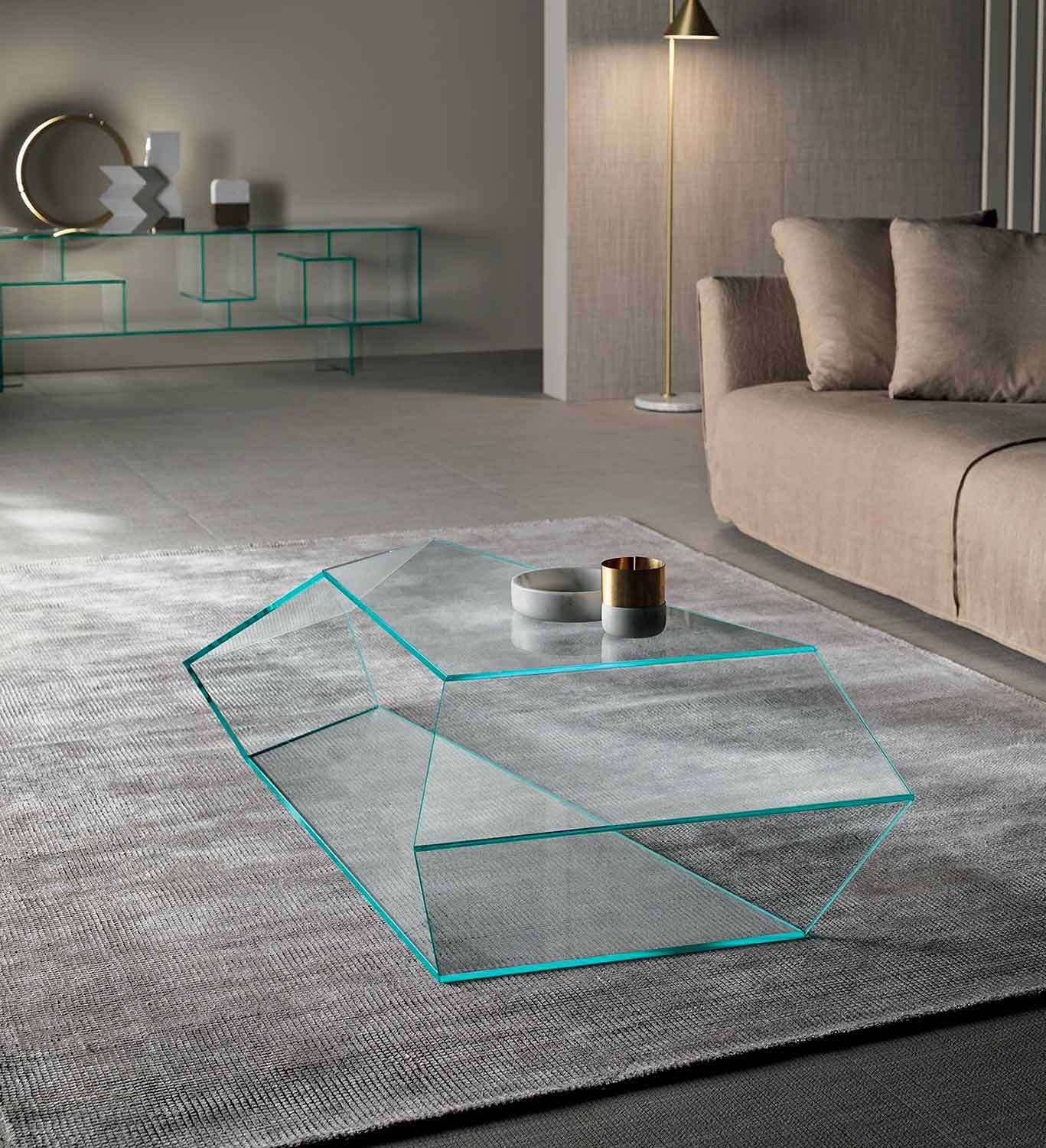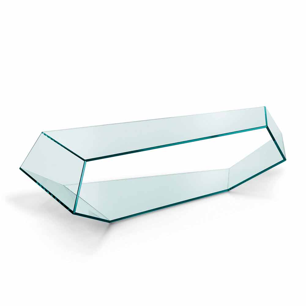 Mesa de centro em forma de design moderno em vidro extra claro ou fumado, artesanal na Itália.