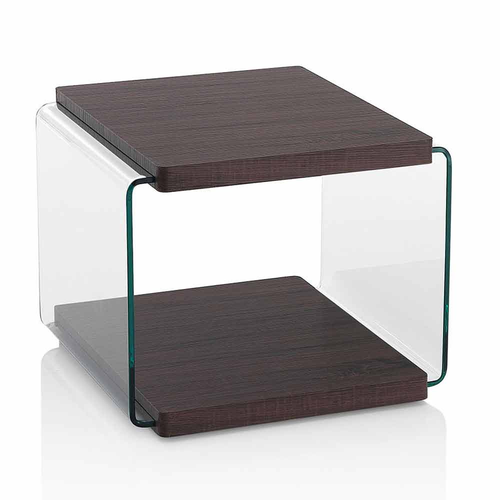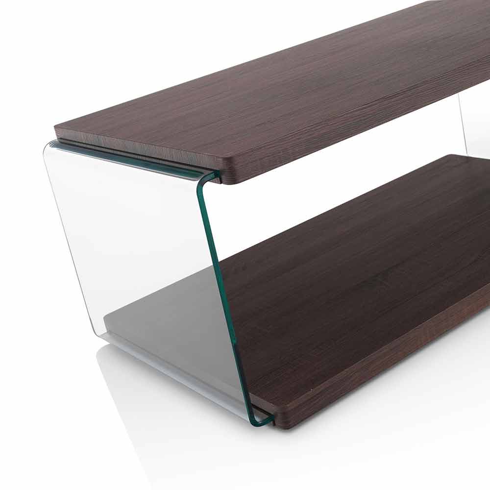 mdf cor de nogueira com inserções laterais em vidro temperado transparente. Precisamente os materiais utilizados permitem que a mesa se adapte a qualquer estilo de mobiliário, desde o mais moderno ao mais clássico, combinando o aspecto