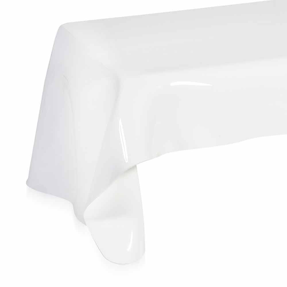 Cada mesa "Ásia" é uma peça única de arte moderna. Ele vem de uma folha de plexiglass de PMMA 100% pura que foi drapejada à mão. Auto-sustentável.