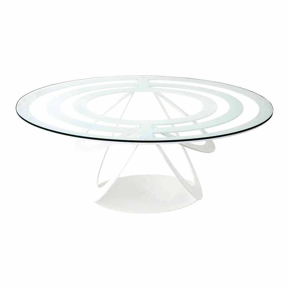 Olfeo é uma mesa de centro oval produzida na Itália com materiais de primeira qualidade. A parte superior é em vidro (5 mm de espessura) , enquanto a base é em ferro e está disponível em dois acabamentos diferentes: