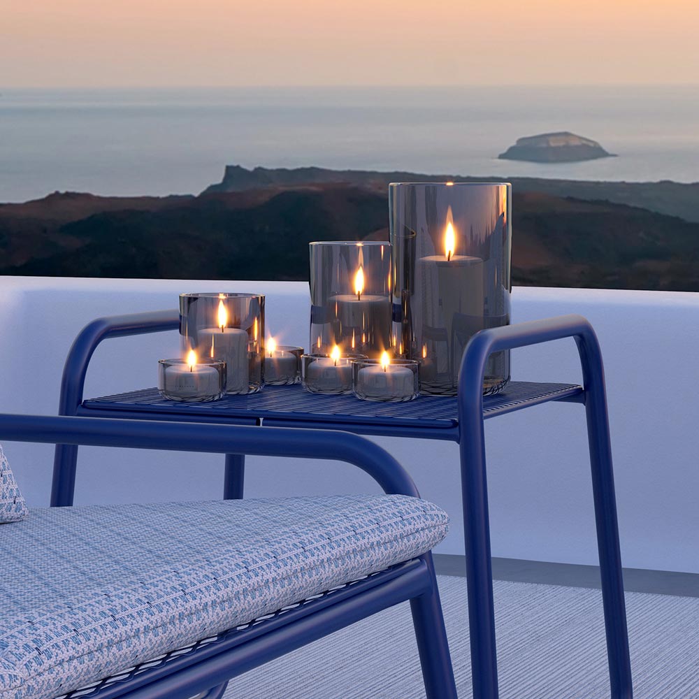 mesa de centro para exterior tem um design rigoroso com um sabor decididamente contemporâneo, mas a sua figura sólida e imponente é suavizada pelas pernas arredondadas.