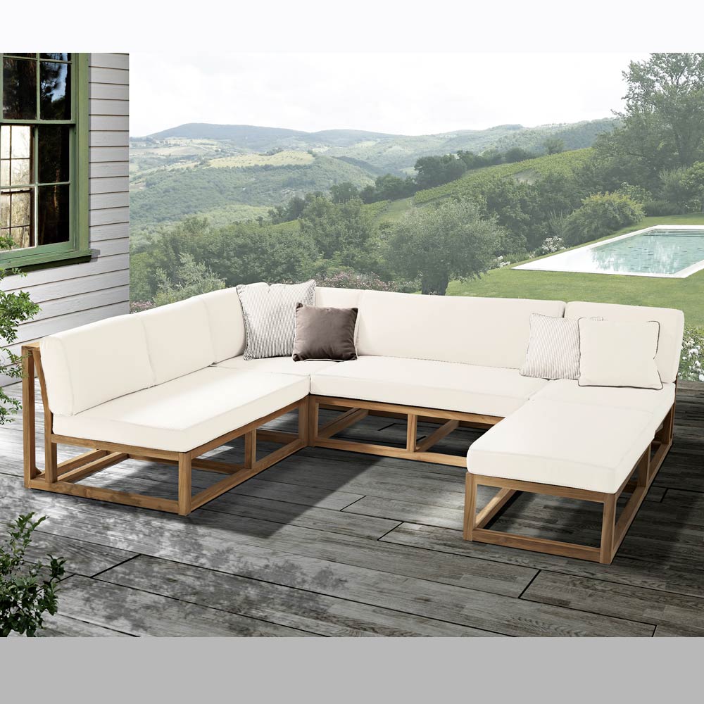 Madeira de teca selecionada da Indonésia proveniente de florestas controladas e sustentáveis (INDONESIANLEGALWOOD). A teca é classificada como a madeira mais valiosa disponível para mobiliário de exterior. É extremamente durável, estável, resistente aos agentes atmosféricos, fungos, parasitas e insectos. Contém níveis elevados de óleos naturais que a tornam resistente e limitam a absorção da humidade. Com o passar do tempo, os móveis de teca expostos ao sol, à chuva, à humidade, etc., tendem geralmente a adquirir uma cor cinzento-prateada: isto deve-se a um processo de oxidação da superfície que protege naturalmente a madeira. Este processo é puramente estético e não prejudica a estrutura nem a qualidade da madeira. O aparecimento de óleo na superfície dos móveis de teca é um processo natural: o óleo pode sair durante os primeiros meses, de forma mais ou menos consistente, consoante o ambiente em que o móvel é colocado. Os óleos naturais presentes na teca são o que a torna a melhor madeira para mobiliário de exterior.